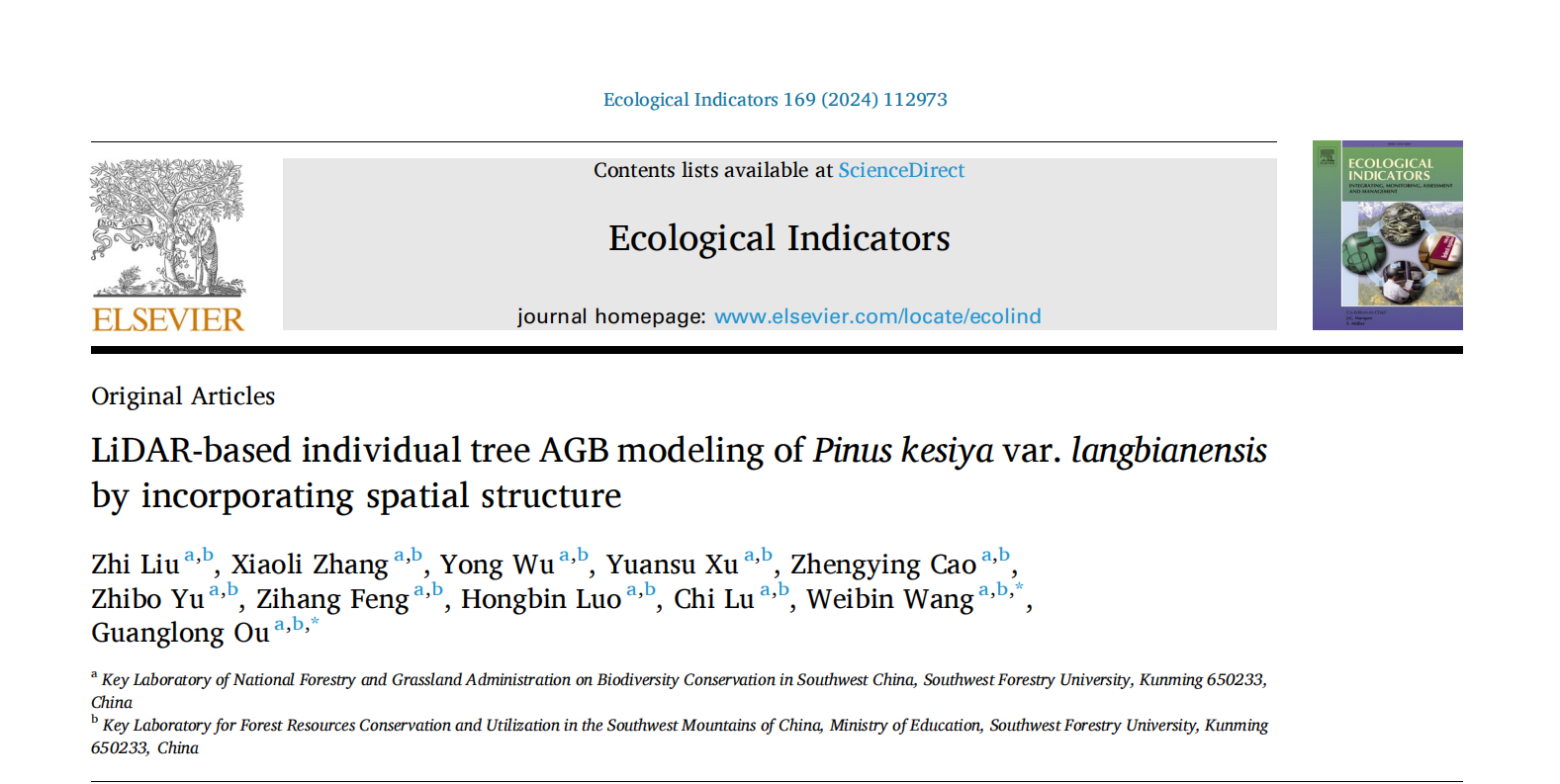在机载LiDAR数据提取单木属性和空间结构参数的基础上,引入空间结构参数构建了不依赖胸径和引入空间结构参数的思茅松单木AGB模型,显著提高模型精度,为森林碳储量高效估算提供了新思路。(Liu et al., 2024, Ecological Indicators, https://doi.org/10.1016/j.ecolind.2024.112973, 中国科学院一区TOP,IF=7.0)。