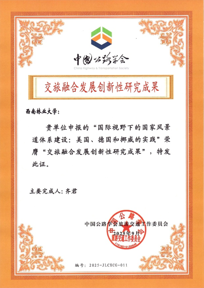 近日,第八届旅游交通大会在湖北宜昌举行,米兰园林园艺学院齐君副教授主持完成的学术论文《国际视野下的国家风景道体系建设:美国、德国和挪威的实践》成功入选交旅融合发展创新性研究成果的评选。