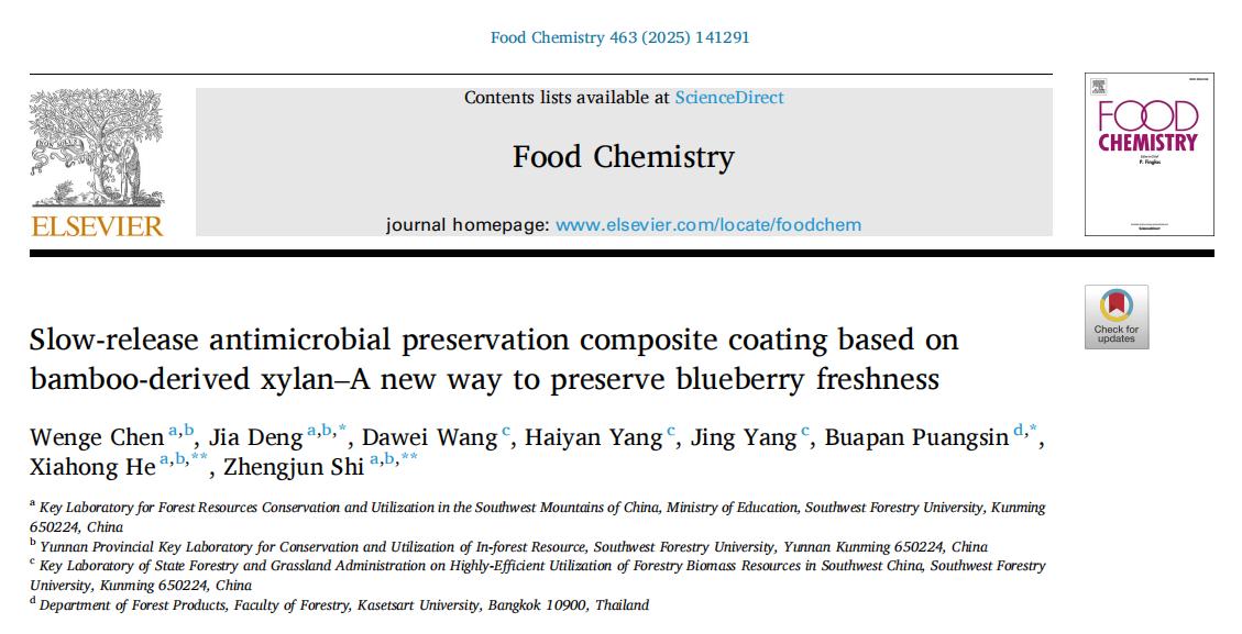 林学院硕士研究生吴化雨、夏思齐,博士研究生周嫒婷、杨乐,材料与化学工程学院硕士研究生陈文歌,分别为论文第一作者,团队成员邓佳、何霞红教授等为通讯作者。相关研究得到国家自然科学基金项目((No.32160395,32160394,32460409),云南省兴滇英才支持计划青年拔尖项目((XDYC-QNRC-2022-0226, YNWR-QNBJ-2020-205)等项目支持。(来源:林学院(亚太林学院)/文/图:邓佳/审核:施蕊/初审:张凡/复审:冷瑾,张冉/终审:柏顺文/责任编辑:张凡)