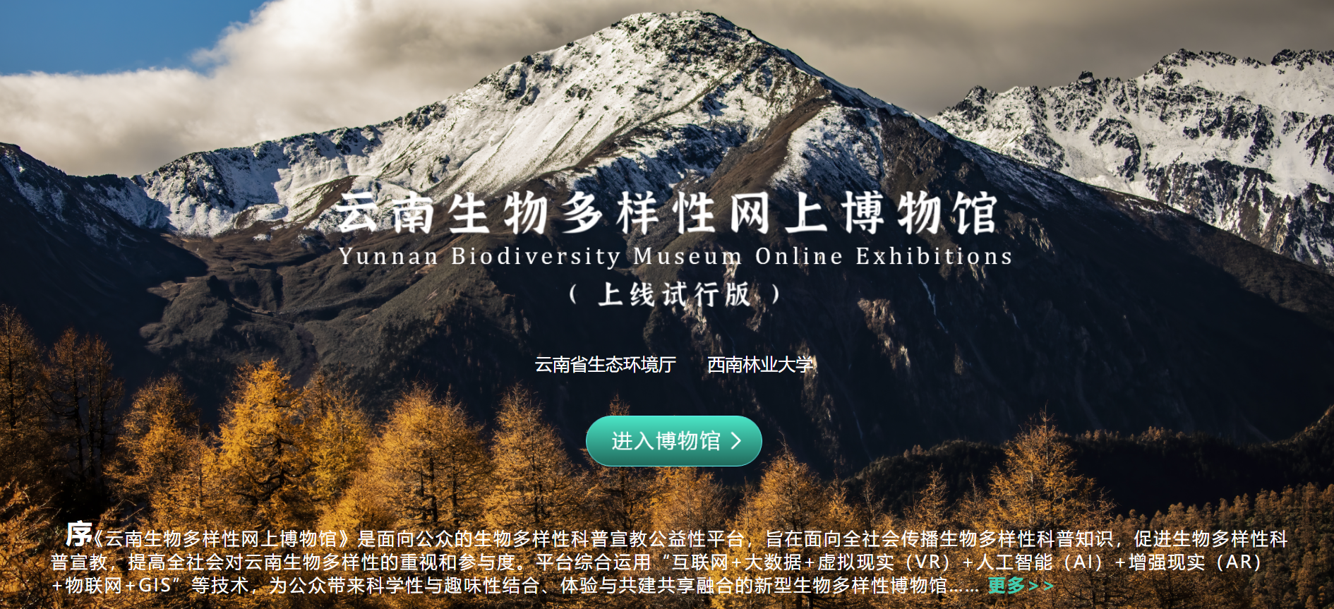 为了更好地融入云南省的生物多样性保护和生态文明建设,服务于COP15大会,云南省生态环境厅与米兰milan官方网站联合,依托双方共建的云南生物多样性研究院平台,充分发挥林学院(亚太林学院)在生物多样性信息学、智慧自然保护地、智慧森保、智慧林业等多交叉学科和新兴领域的创新团队和科研成果优势,将学科知识转化为科普知识,历时五年,几十位专家打造了一个面向全球的生物多样性科普教育平台——云南生物多样性网上博物馆。