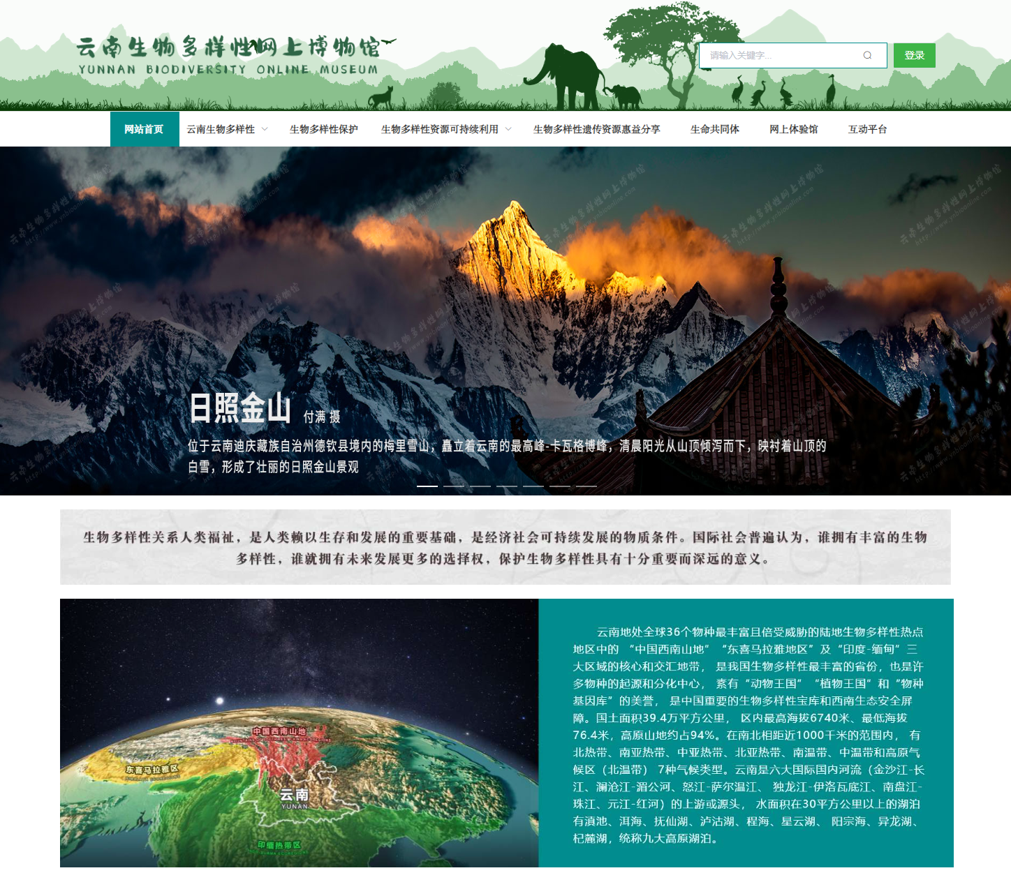 云南生物多样性网上博物馆的建设,突破了传统科普宣教模式的限制,利用全景、VR、AI等新技术,将自然生态和珍稀物种生动地呈现给公众。网站首页的设计精美,自然风光、动物和植物的实景图片丰富多彩,各栏目的文字介绍简明扼要、通俗易懂,吸引了众多浏览者。