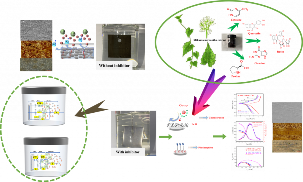 近日,材料与化学工程学院李向红教授团队在外来入侵杂草缓蚀剂研究领域取得新进展。相关成果以“Synergistic inhibition effect ofMikania micranthaextract with potassium iodide on the corrosion of cold rolled steel in methanesulfonic acid solution”为题,发表在材料腐蚀领域国际顶级期刊《Corrosion Science》(一区TOP,IF=7.72)上,第一作者是材料与化学工程学院2020级硕士研究生杜鹏飞,通讯作者为米兰milan官方网站李向红教授和东北大学徐大可教授。