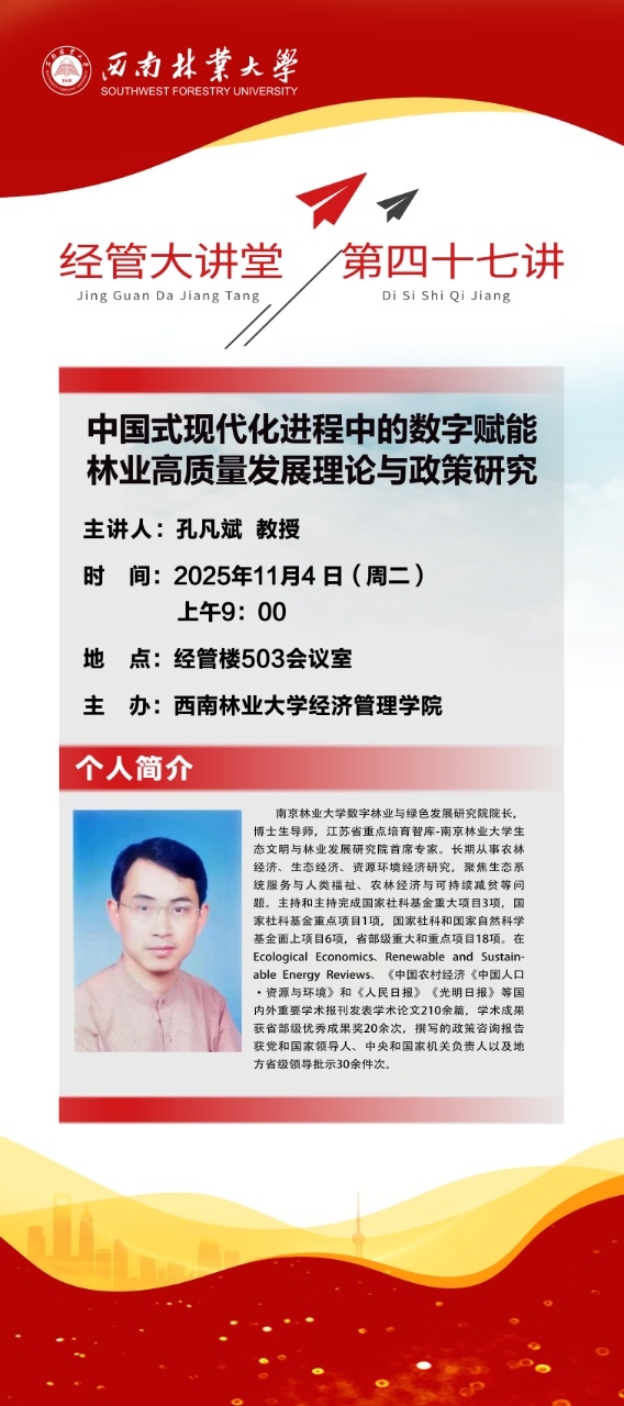 第四十七讲:中国式现代化进程中的数字赋能林业高质量发展理论与政策研究