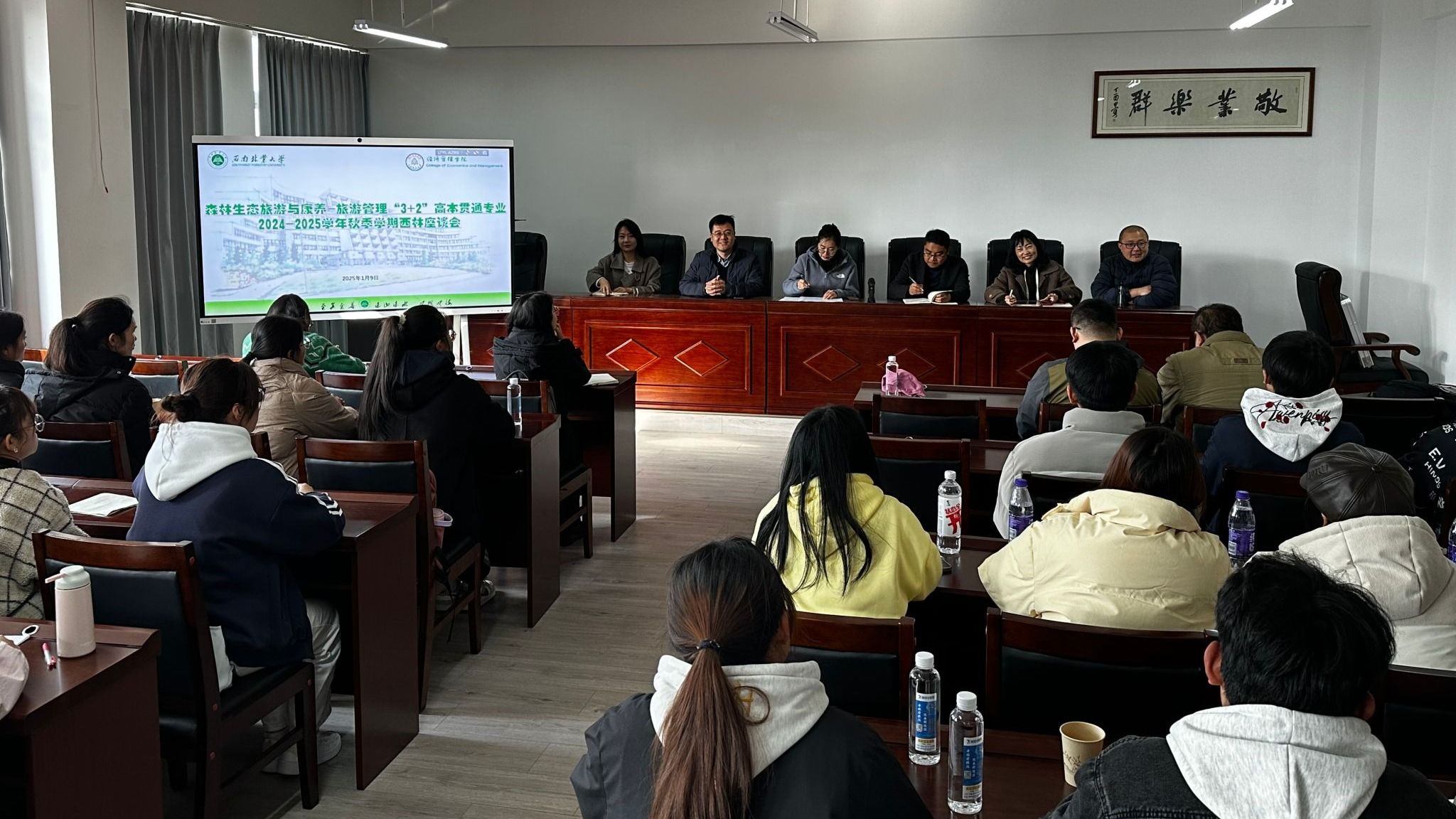 1月9日,经济管理学院与云南省林业职业技术学院文化旅游学院联合举办的“森林生态旅游与康养:旅游管理‘3+2’高本贯通专业”2024-2025学年秋季学期座谈会。
