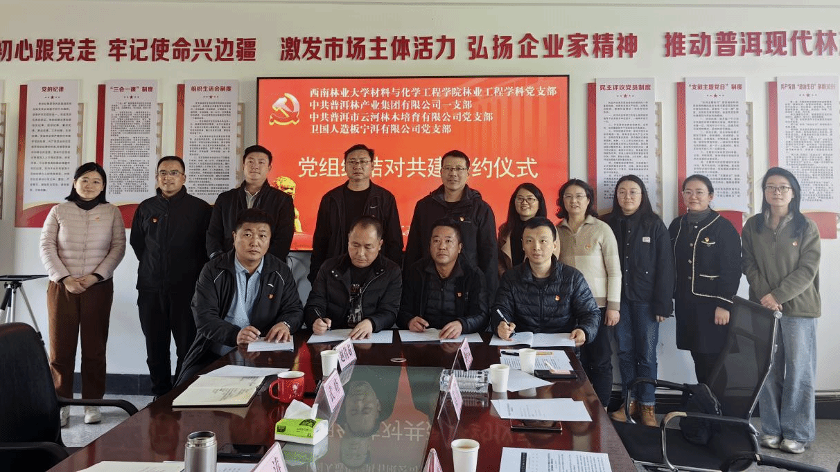 1月14日,材料与化学工程学院林业工程学科党支部与普洱林产业集团党委3个党支部在普洱林产业集团有限公司签订支部结对共建协议。