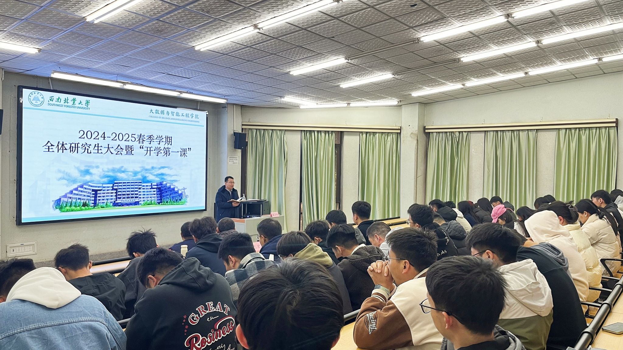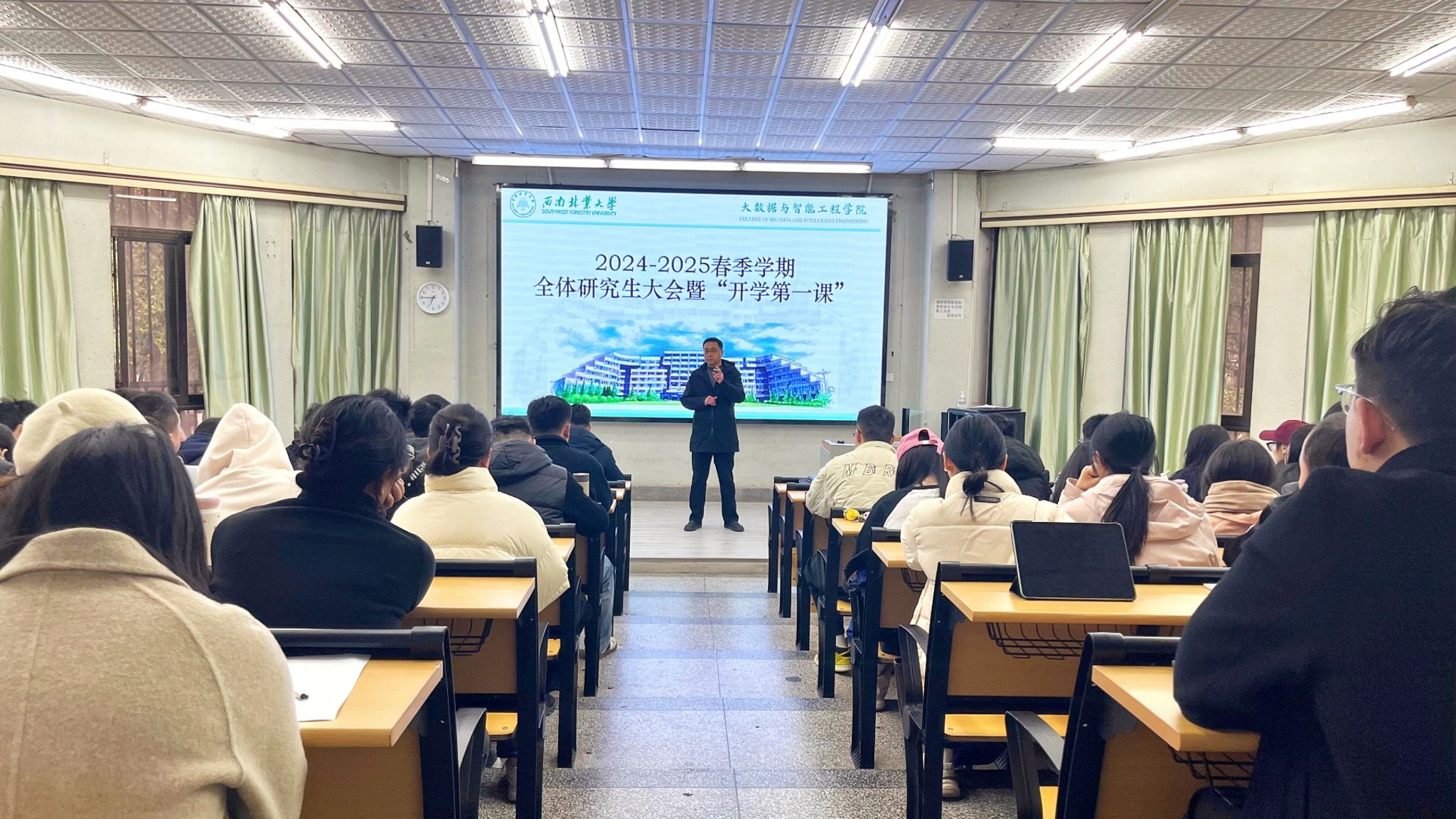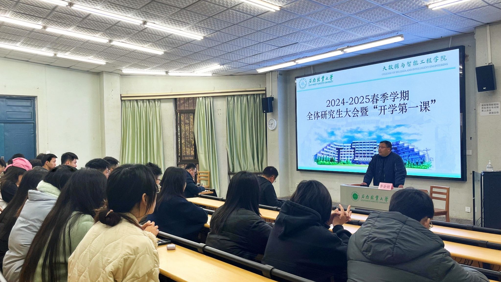 3月7日,大数据与智能工程学院召开全体研究生大会暨“开学第一课”,为新学期开局奠定良好基础。学院党政领导班子、硕士班班主任和全体研究生参加会议,会议由副院长寇卫利主持。