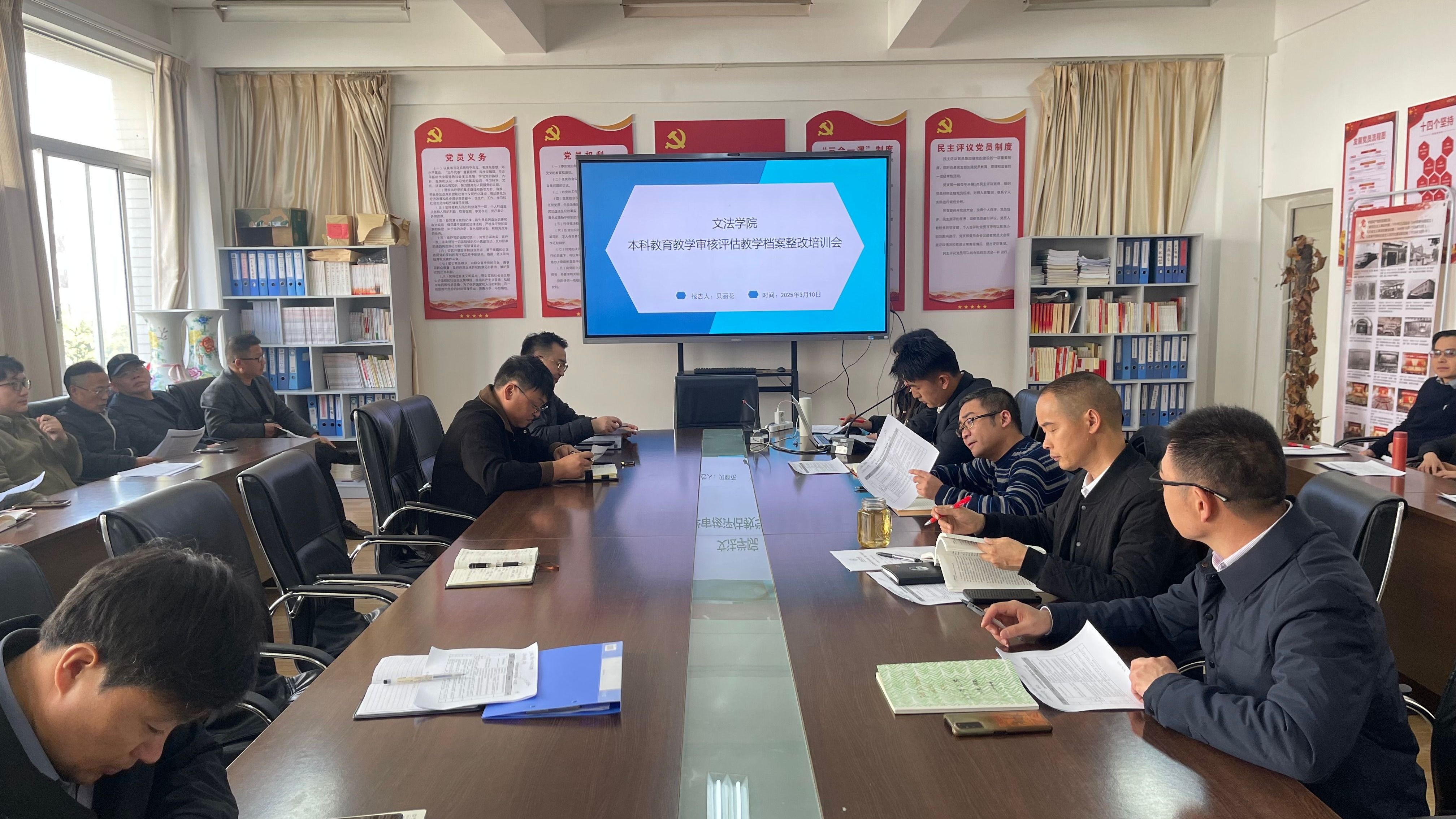 近日,文法学院召开本科教育教学审核评估教学档案整改培训会,学院领导班子、教研室主任、教学秘书及任课教师30余人参会。