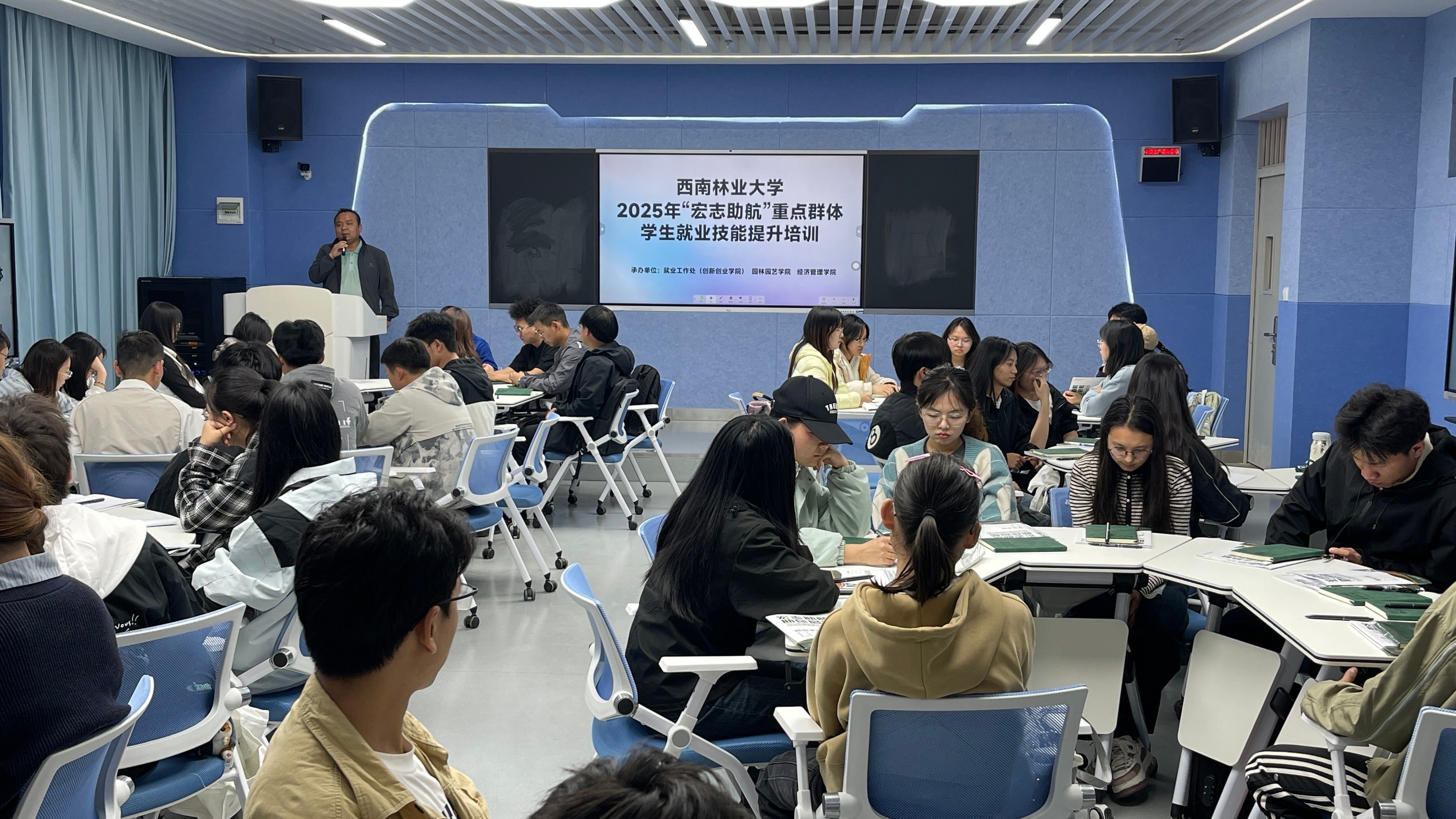 本次培训班由就业工作处(创新创业学院)牵头组织,由园林园艺学院和经济管理学院具体承办,开设3个班级共计240名同学参训,旨在针对重点群体学生在求职就业过程中面临的挑战和困难,帮助学生弥补短板,提升就业竞争力。培训课程内容设置紧密结合培训大纲和课程体系,针对米兰专业特色和学生实际需求,培训涵盖了就业准备、求职技能等多个方面。通过理论讲解、案例分析、模拟演练等多种教学方法,帮助学生拓展职业视野,了解行业发展动态和岗位要求,增强求职信心。