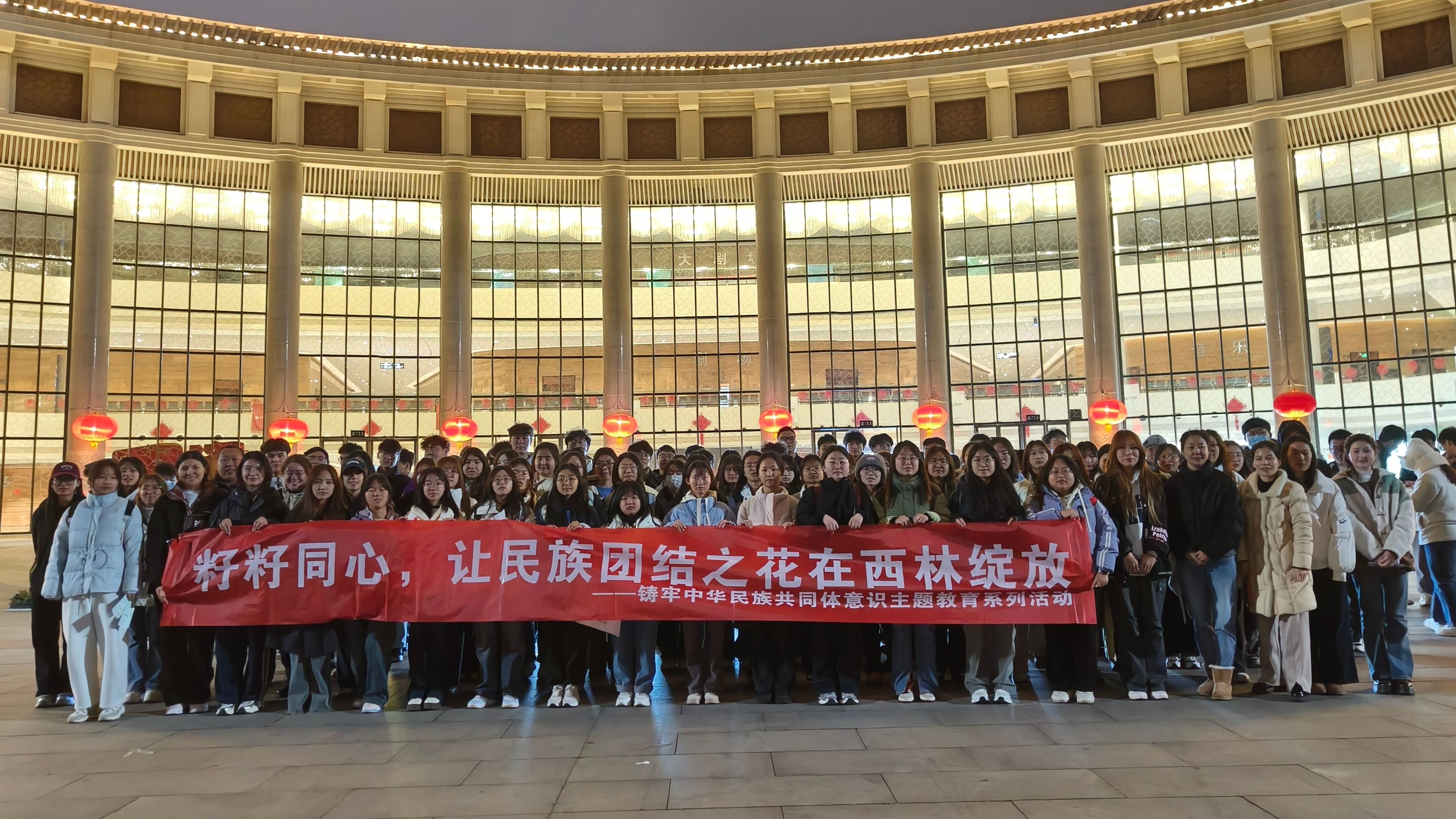 3月18日,学校组织400余名学生到云南大剧院观看民族史诗话剧《澜沧水长》,理学院包括民族预科班同学在内的110余名师生参加活动,并开展以“籽籽同心,让民族团结之花在西林绽放”为主题的铸牢中华民族共同体意识教育,学院党委书记、副书记、团委书记与学生一同观看演出。
