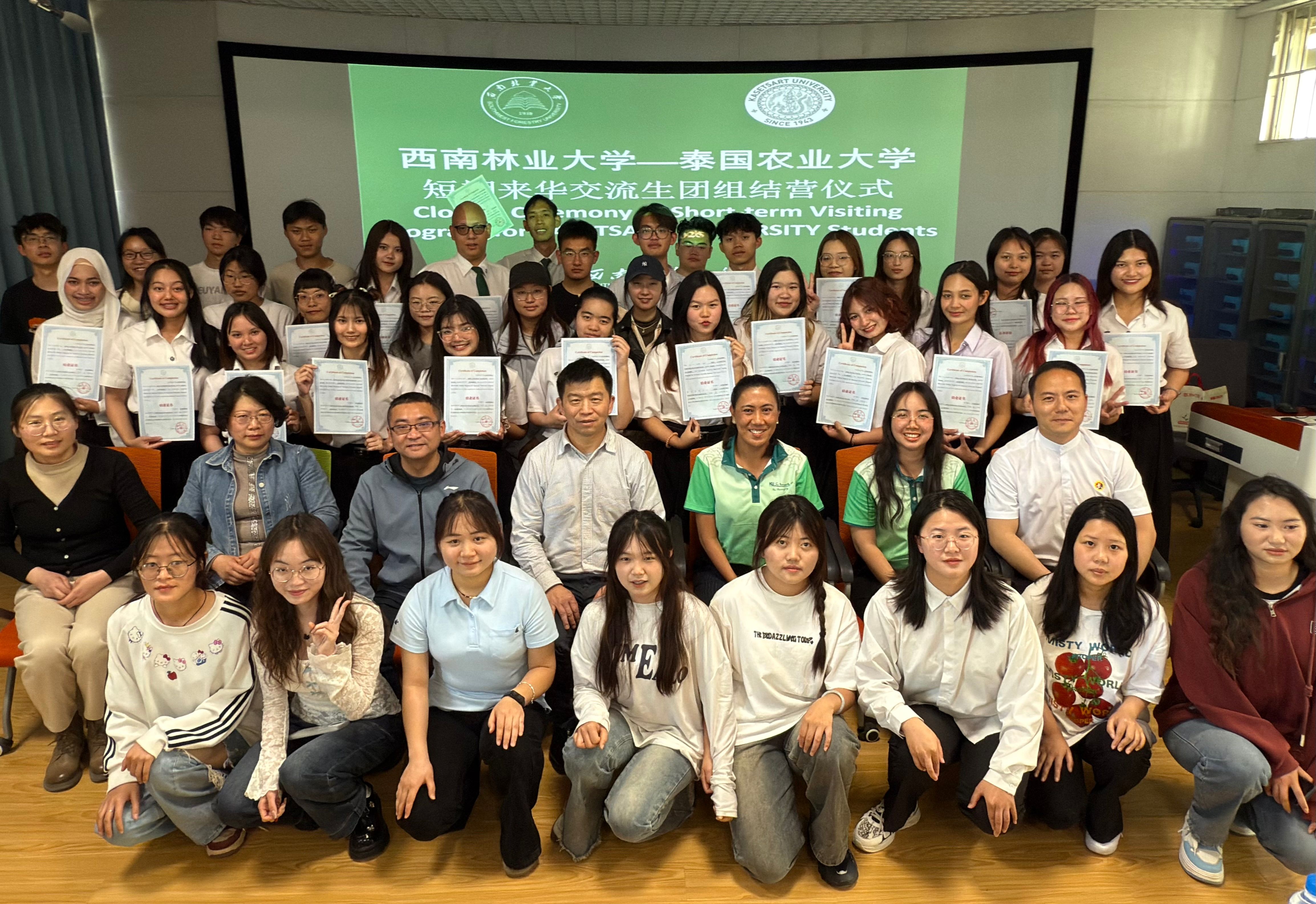 结营仪式结束后,与会嘉宾给交流学生们颁发了结业证书。(来源:外国语学院(国际学院)/文/图:胡苑姗/审核:何新元/初审:张冉/复审:冷瑾/终审:张武先, 柏顺文/责任编辑:张冉)