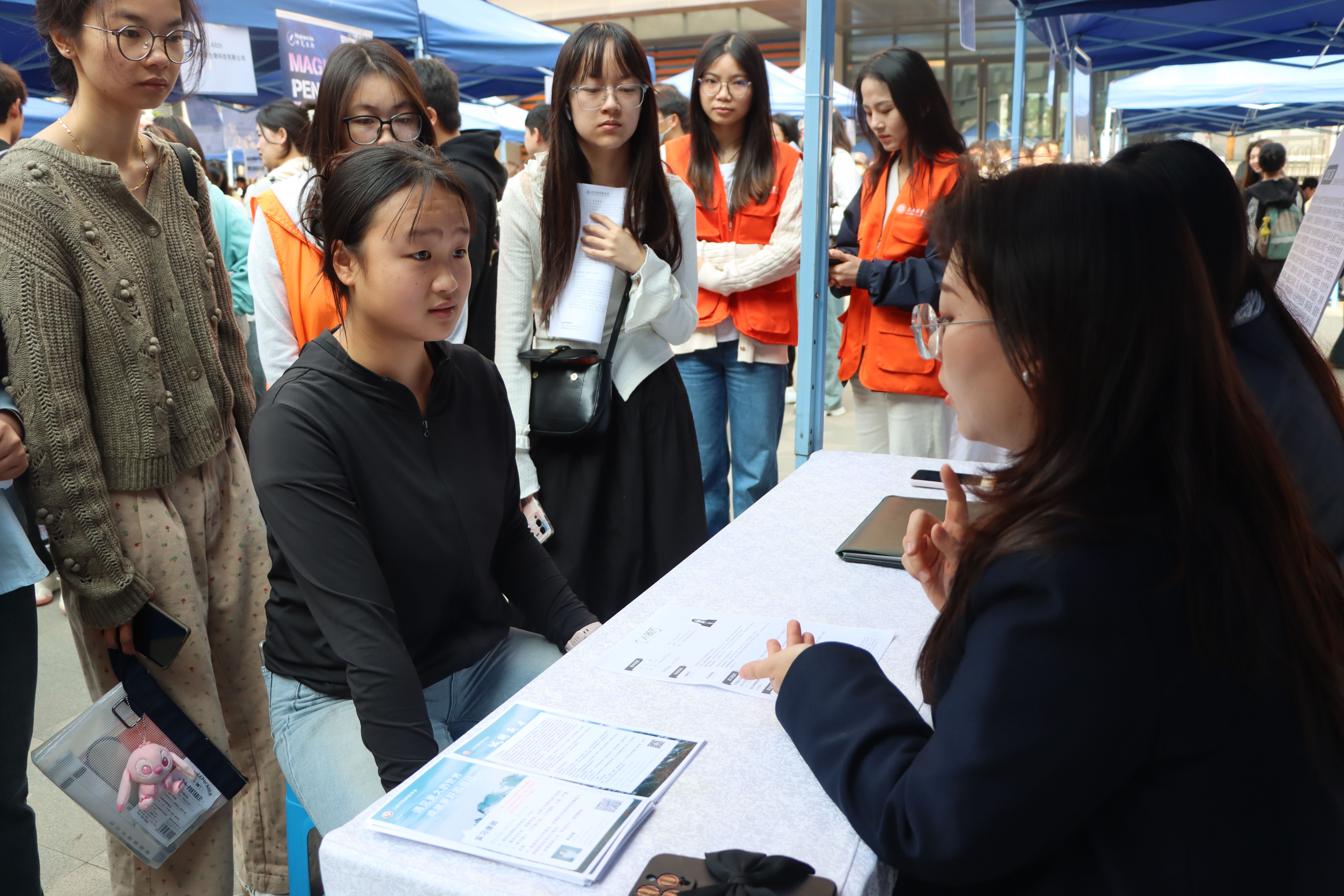 4月10日,米兰milan官方网站“周五职通车”专场招聘会(系列十四)在智华楼后广场举办。校纪委书记武红星、副校长狄光智、就业工作处领导、文法学院党政班子、各学院就业工作负责人到场指导工作。