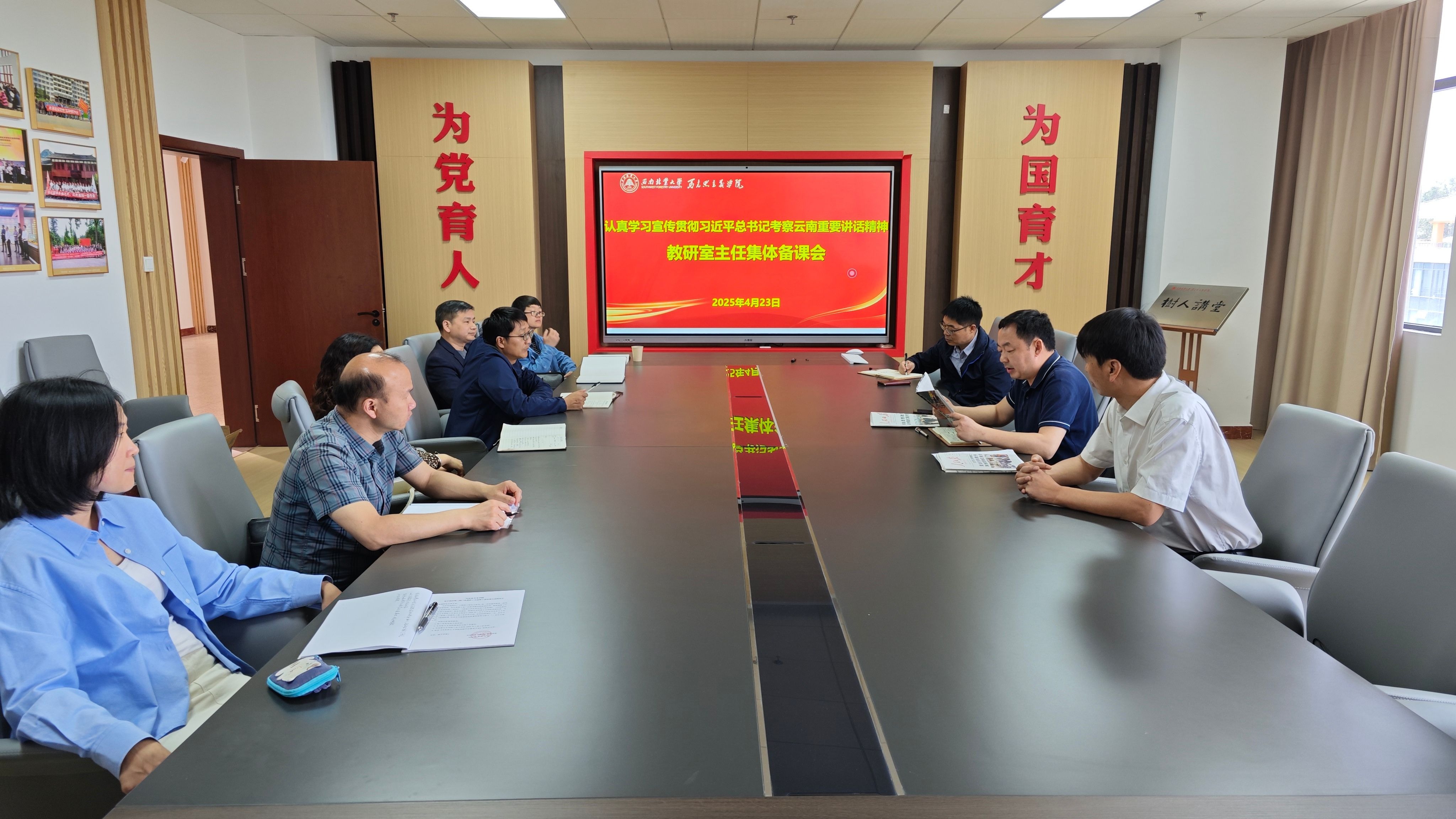 4月23日下午,马克思主义学院召开学习宣传贯彻习近平总书记考察云南重要讲话精神集体备课会,聚焦如何及时有效地将习近平总书记考察云南重要讲话精神融入各教研室的集体备课会和思政课教学中,让学生充分学习、认真领悟习近平总书记对云南发展的深切关怀,切实增强思政课的思想性、理论性和亲和力、针对性。会议由马克思主义学院院长尹仑主持。