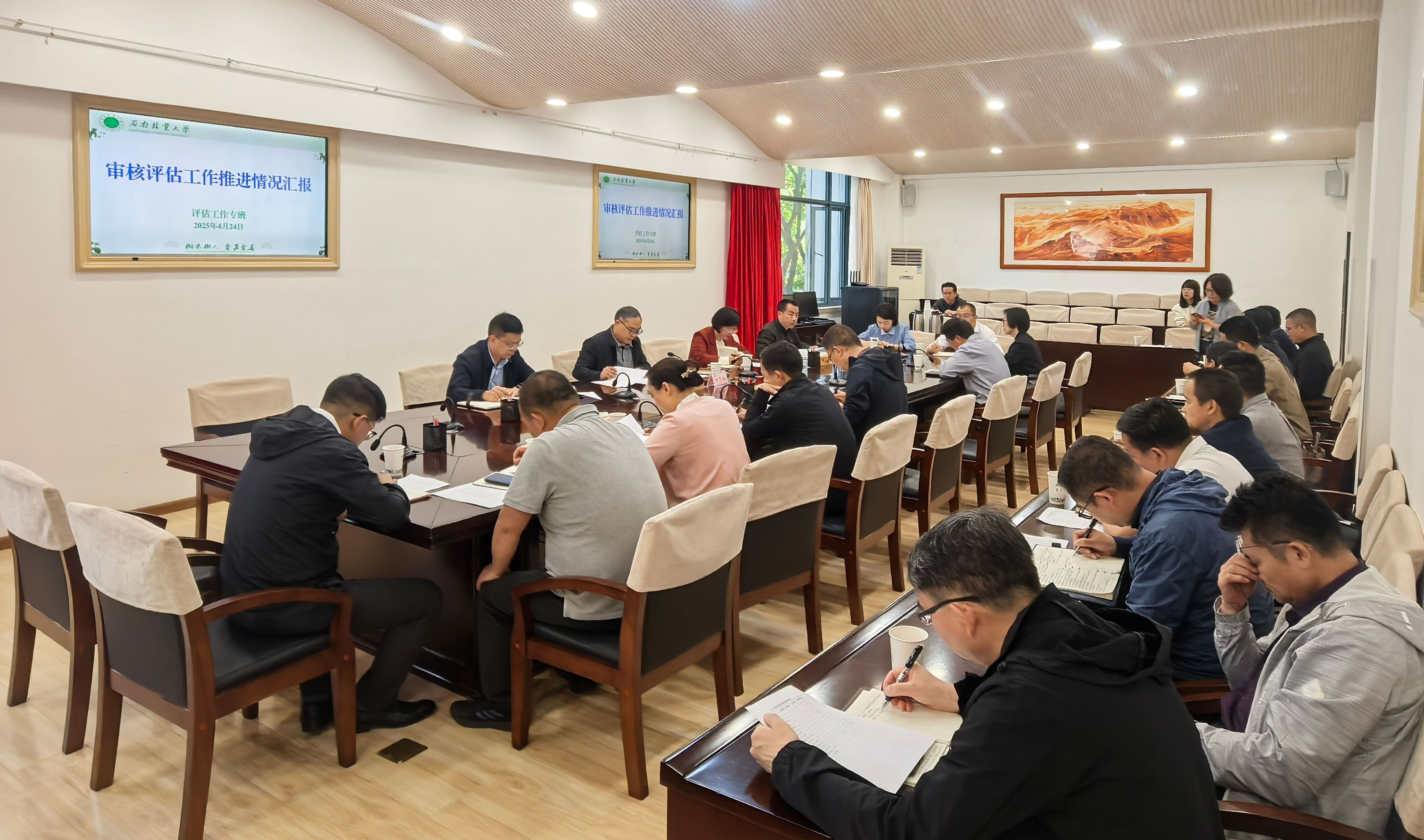 会上,审核评估专班对当前各二级单位自评报告、支撑材料、典型教学案例、教学档案整改等材料提交,学校教育教学相关管理制度修订,基础数据以及专家案头材料准备进展都进行了汇报。此外,还对评估专家校内外集中考察点的遴选情况进行了介绍,并对相关学院和部门就如何优化和提升布置了工作任务。