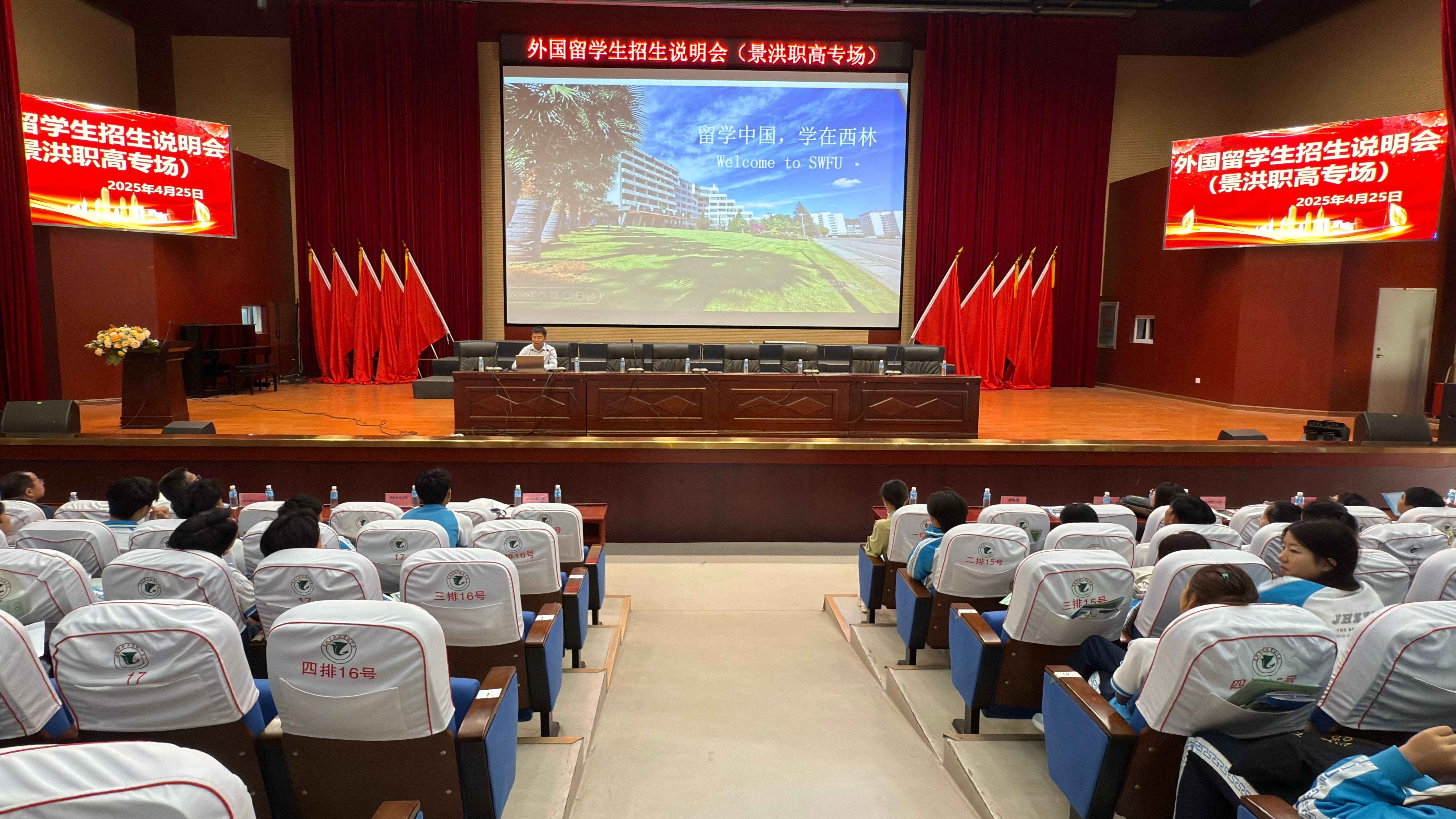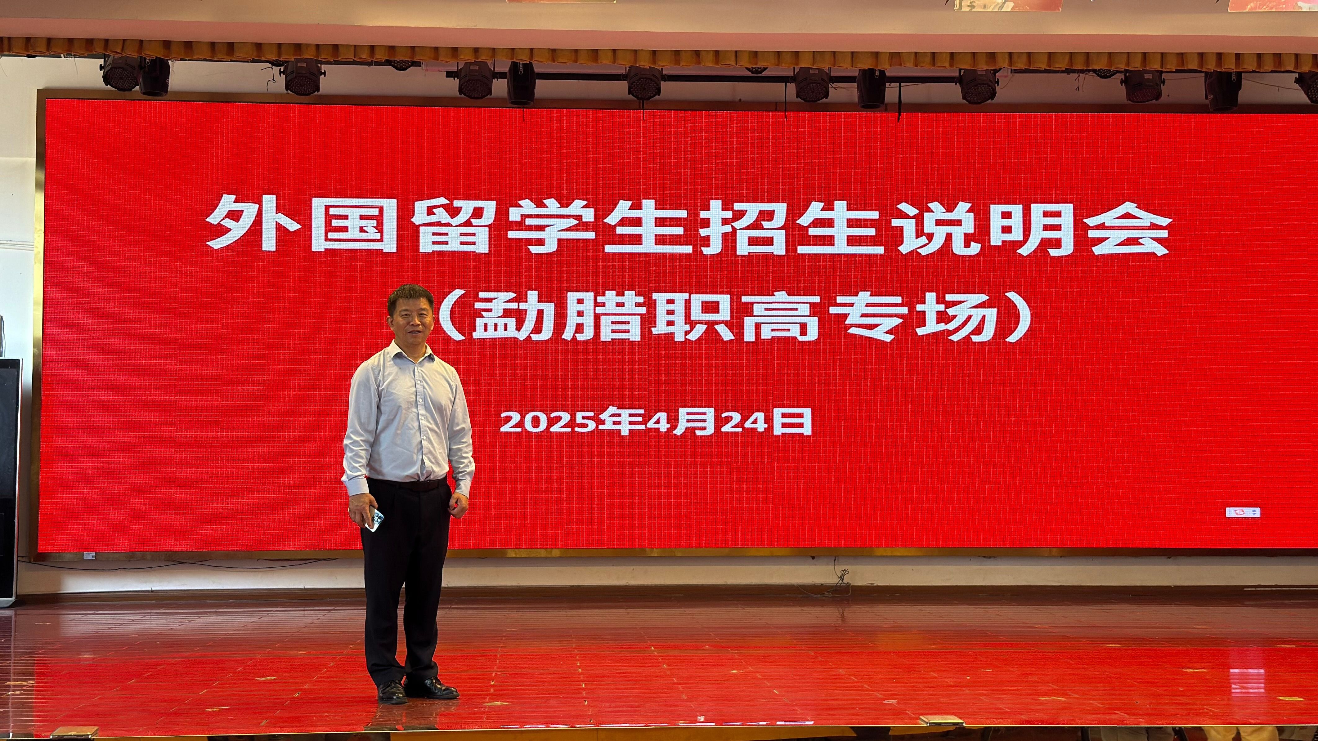 4月24日至25日,云南省教育厅协同西双版纳州教体局在西双版纳州组织10所省内高校开展来华留学生招生宣讲会,米兰milan官方网站外国语学院(国际学院)院长何新元带队参加了此次宣讲活动,分别在景洪市高级职业中学和勐腊县高级职业中学,向就读于当地的500余名外籍学生及教师推介米兰milan官方网站“留学中国·学在西林”品牌。