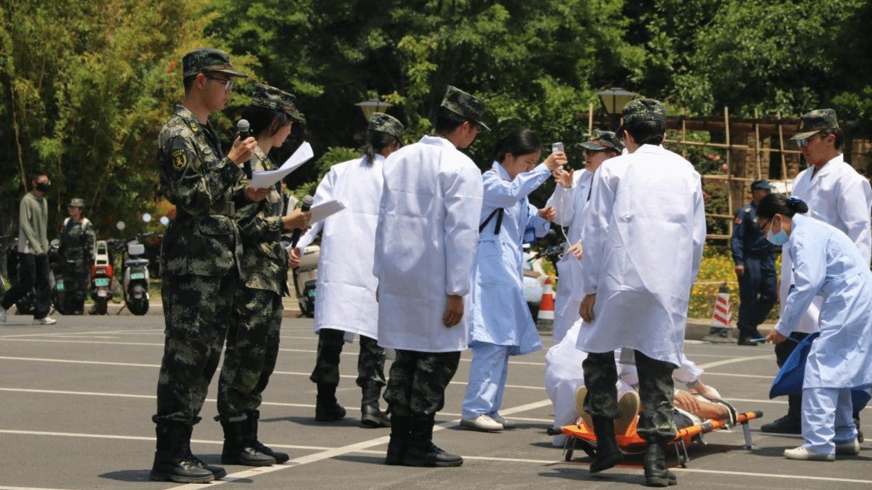演练模拟地震突发场景,随着刺耳的警报声响起,全体人员迅速反应,遵循“就近避险”原则,冷静、有序地就近寻找安全的避难场所进行紧急避险,整个过程紧张有序,充分展现了师生们良好的应急反应能力和组织纪律性。在疏散至安全区域后,校医院老师现场为大家进行了伤员包扎和 AED 使用的培训讲解,通过专业、详细的演示和指导,进一步增强了师生的急救知识和技能,为应对突发事件中的急救需求提供了有力保障。