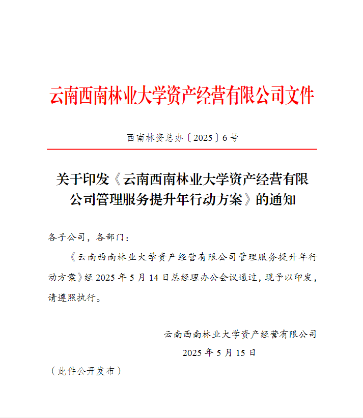 5月15日,资产经营公司印发管理服务提升年行动方案,全面启动管理服务提升年行动。
