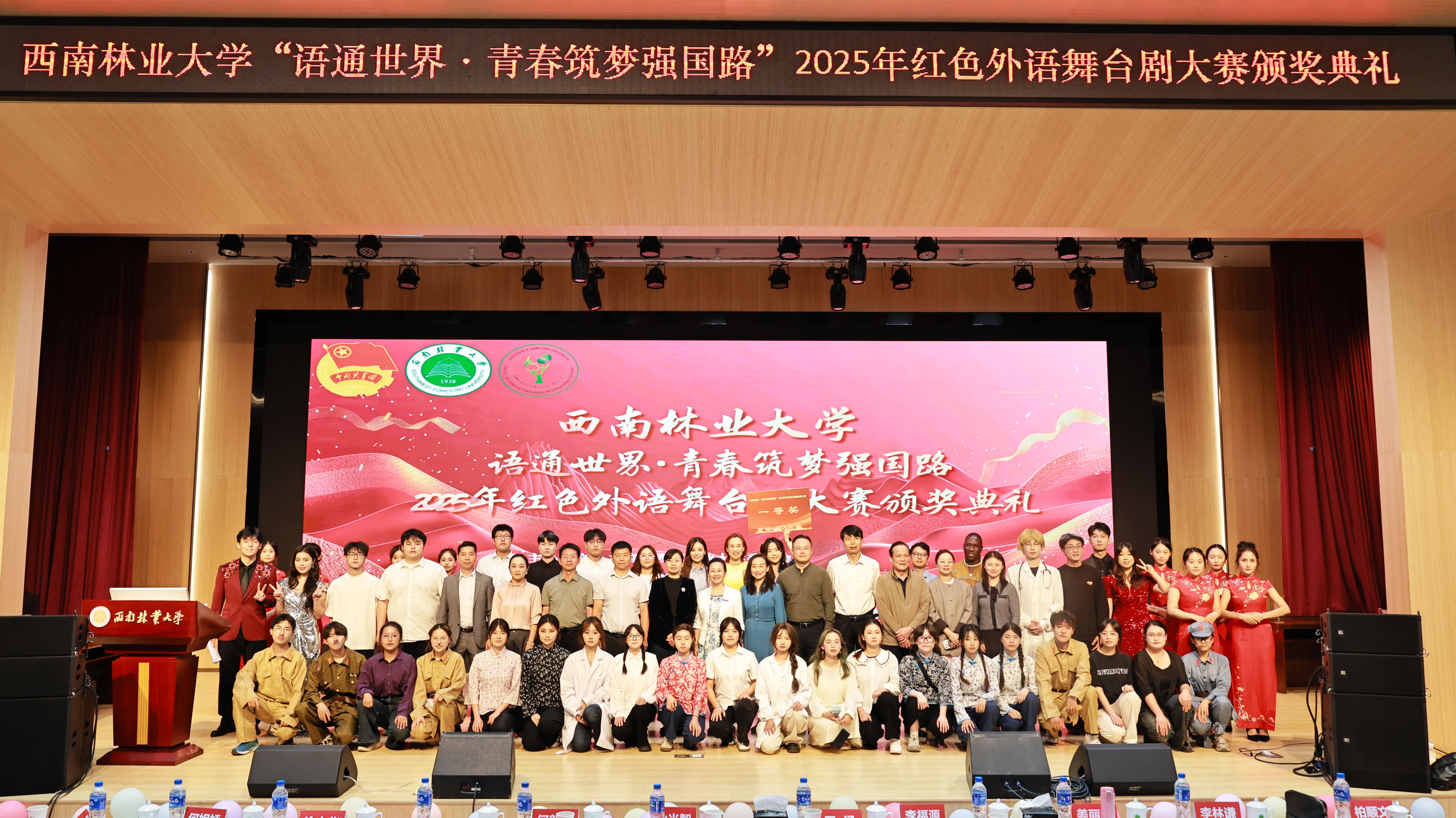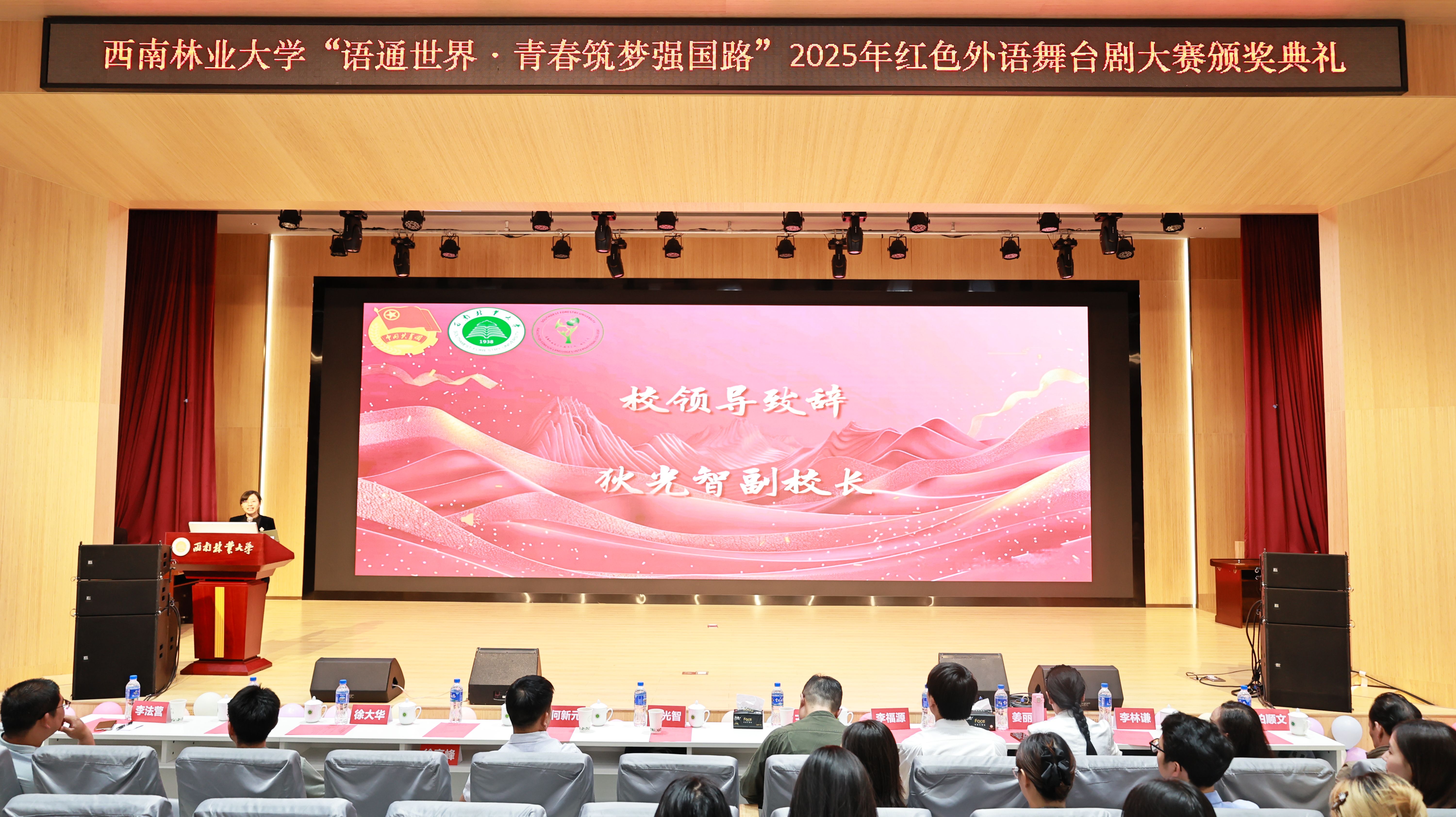 狄光智为颁奖典礼致辞。她强调,本次活动是学校落实立德树人根本任务的创新举措,通过将党的二十大精神与中华优秀传统文化有机融入外语教学实践,打造了“课程思政”与语言学习的深度融合平台。参赛学子以英语、法语、泰语等多语种演绎红色经典剧目,不仅锤炼了跨文化表达能力,更在舞台实践中深悟中国精神、厚植家国情怀,成为“讲好中国故事”的青年使者。