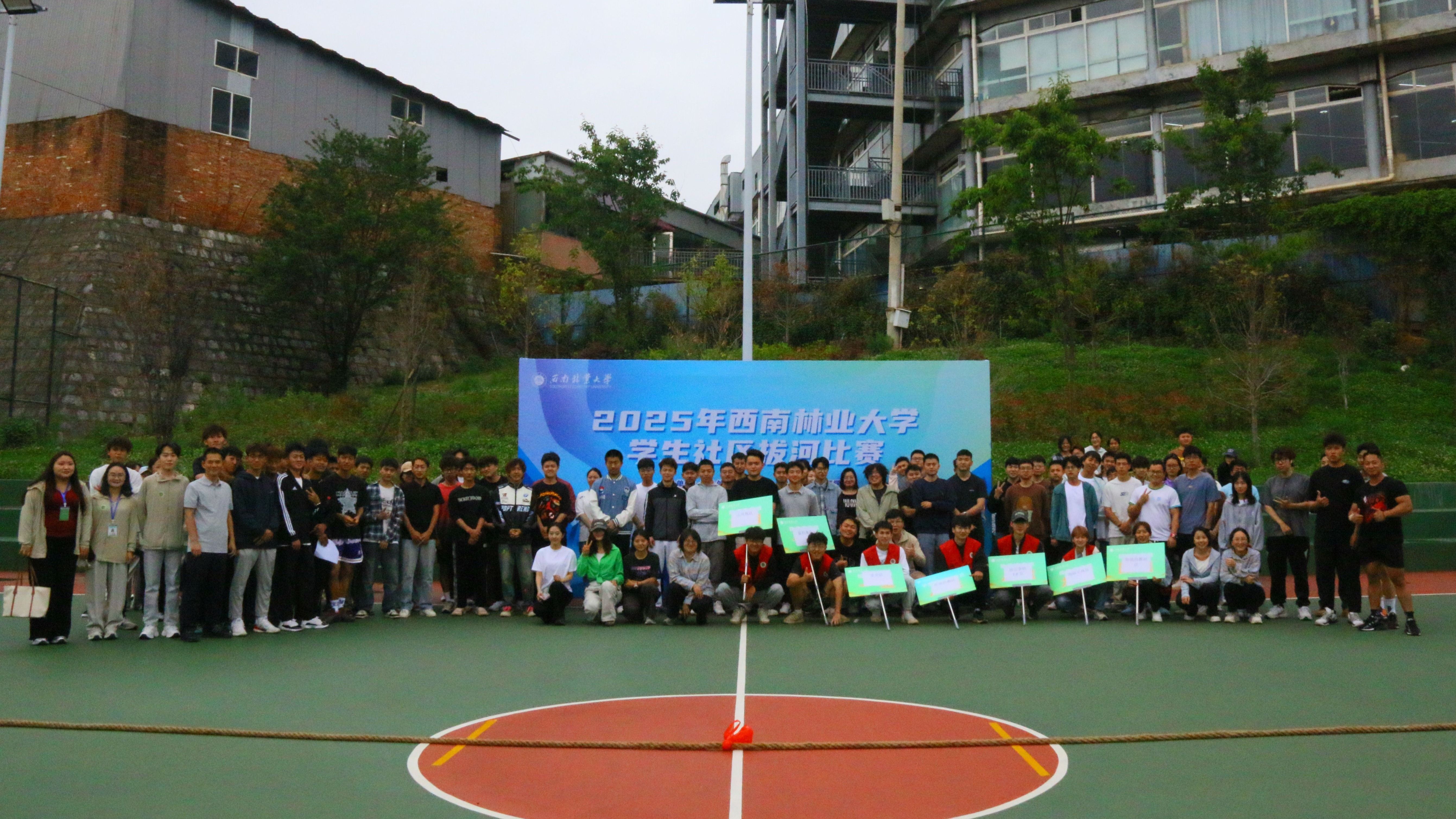 本次学生社区拔河比赛采用初赛一局决胜制,复赛、决赛三局两胜制,12支参赛队伍通过抽签形式参与比赛。赛场上,同学们团结一致,心往一处想、劲往一处使,跟随一声声“一二、一二”的口号,尽情释放着青春力量,现场气氛极度热烈。经过一个多小时的激烈角逐,最终产生了本年度学生社区拔河比赛的一、二、三等奖。