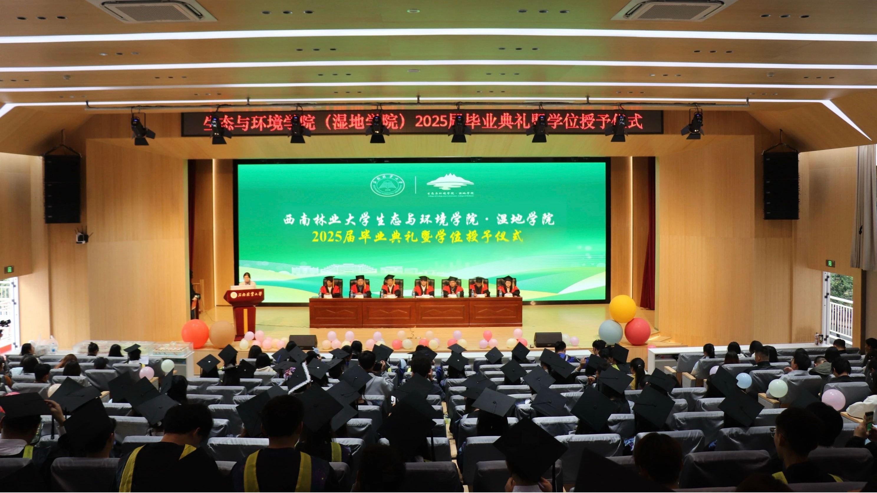 5月25日,生态与环境学院(湿地学院)在北图书馆大报告厅举办2025届毕业典礼暨学位授予仪式。学院党政领导、教师代表、辅导员、毕业班班主任、学生组织代表及2025届毕业生代表,共计300余人出席仪式,共同见证了这一重要时刻。