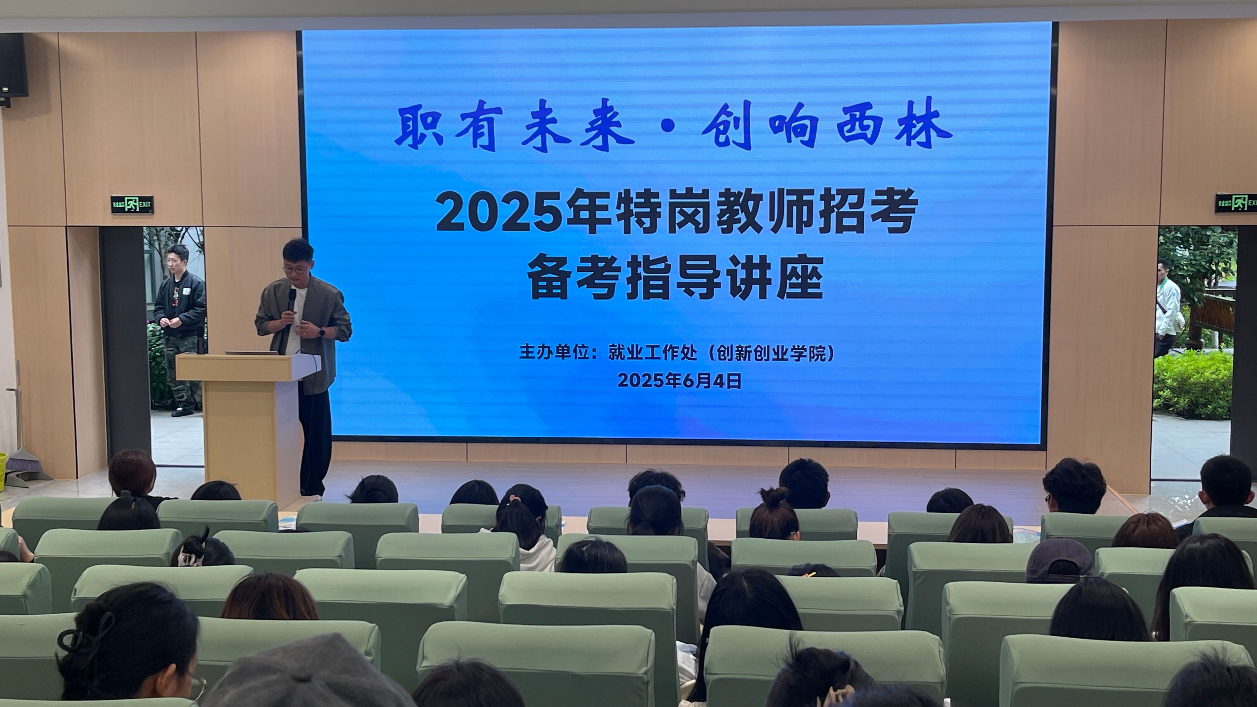 6月4日,就业工作处(创新创业学院)举办“职有未来·创响西林”2025年特岗教师招聘备考指导讲座。本次讲座吸引了来自全校各学院、各专业的130余名学生到场参与。