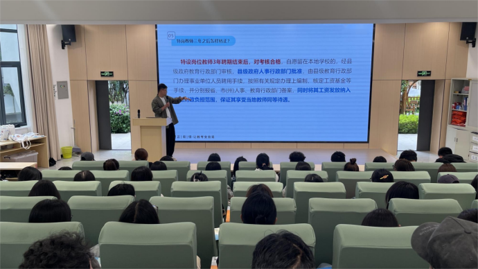 主讲老师围绕云南省2025年特岗教师招聘政策进行了系统讲解,详细介绍了招聘对象的基本条件,并重点强调了特岗教师这一基层就业项目的优惠政策,鼓励有条件的同学积极报考。讲座老师还结合同学们的专业特点,分别就语文、数学、英语、音乐、体育、美术等热门招聘学科的考试内容、题型结构及复习策略进行了深入讲解,指导同学们要根据不同学段的特点调整备考策略,并不断强化语言运用能力和教学实践能力。