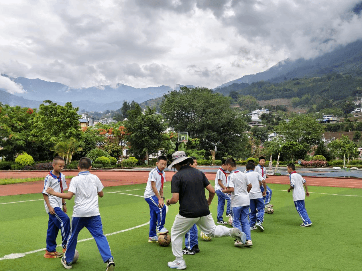 实施学校体育美育浸润行动计划是云南省政府2025年10件惠民实事之一,是省委、省政府推动教育优质均衡发展,为民办实事的重要战略部署。自2023年9月首批浸润行动计划以来,学校锚准镇康县校园足球这一薄弱环节,实施“精准派驻、长效帮扶”,累计选派4批共81名优秀师生赴镇康县开展教育帮扶工作,其中包括18名足球专项学生。帮扶团队充分发挥专业优势,通过开设足球课程、组建足球训练队、建设足球社团和兴趣小组、开展足球课后服务等多种形式,为当地学校打造了系统化的足球教育体系,为此次认定全国青少年校园足球特色学校筑牢了坚实基础。