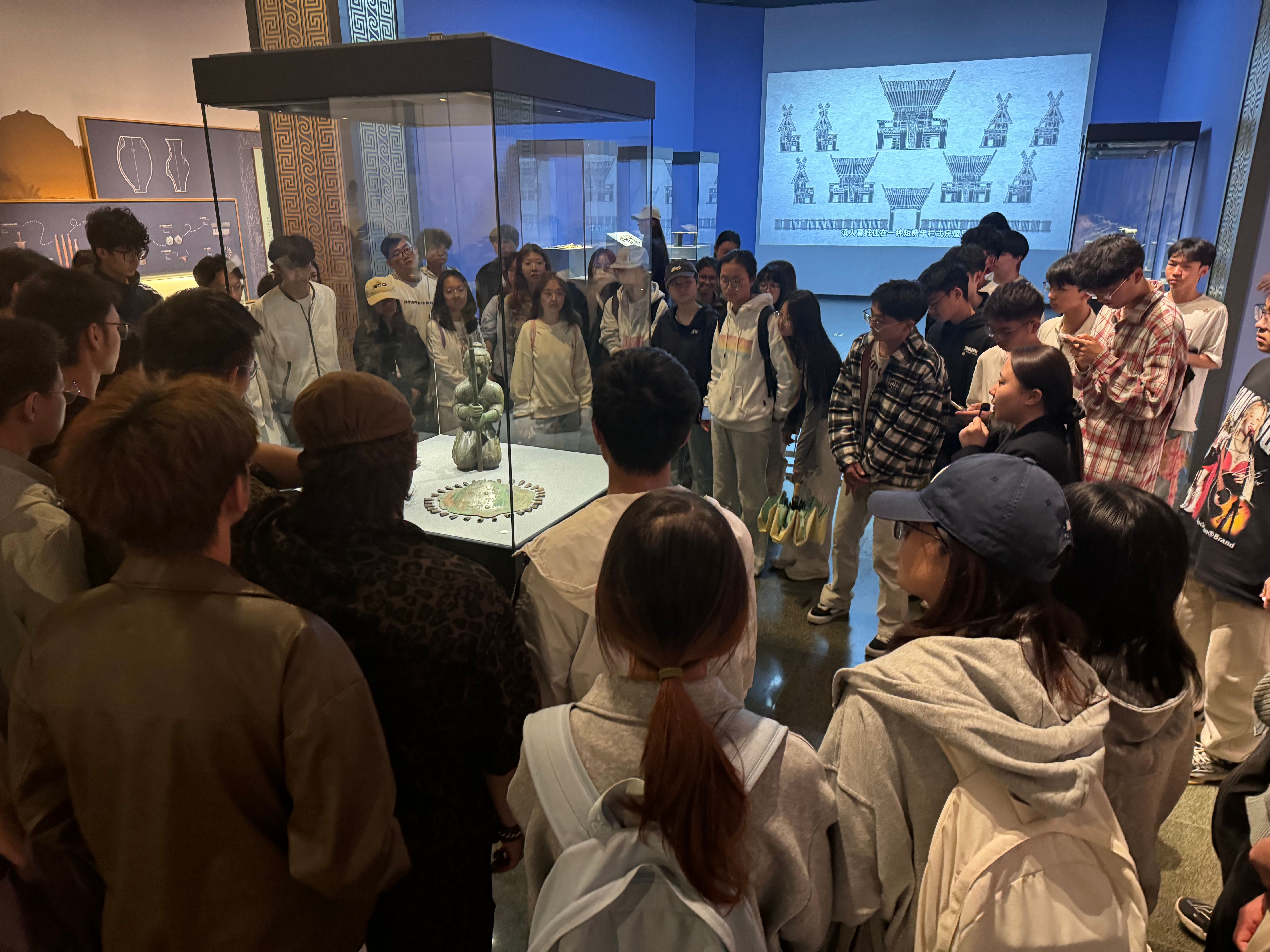 昆明市博物馆讲解员向米兰milan官方网站的学生介绍古滇文化