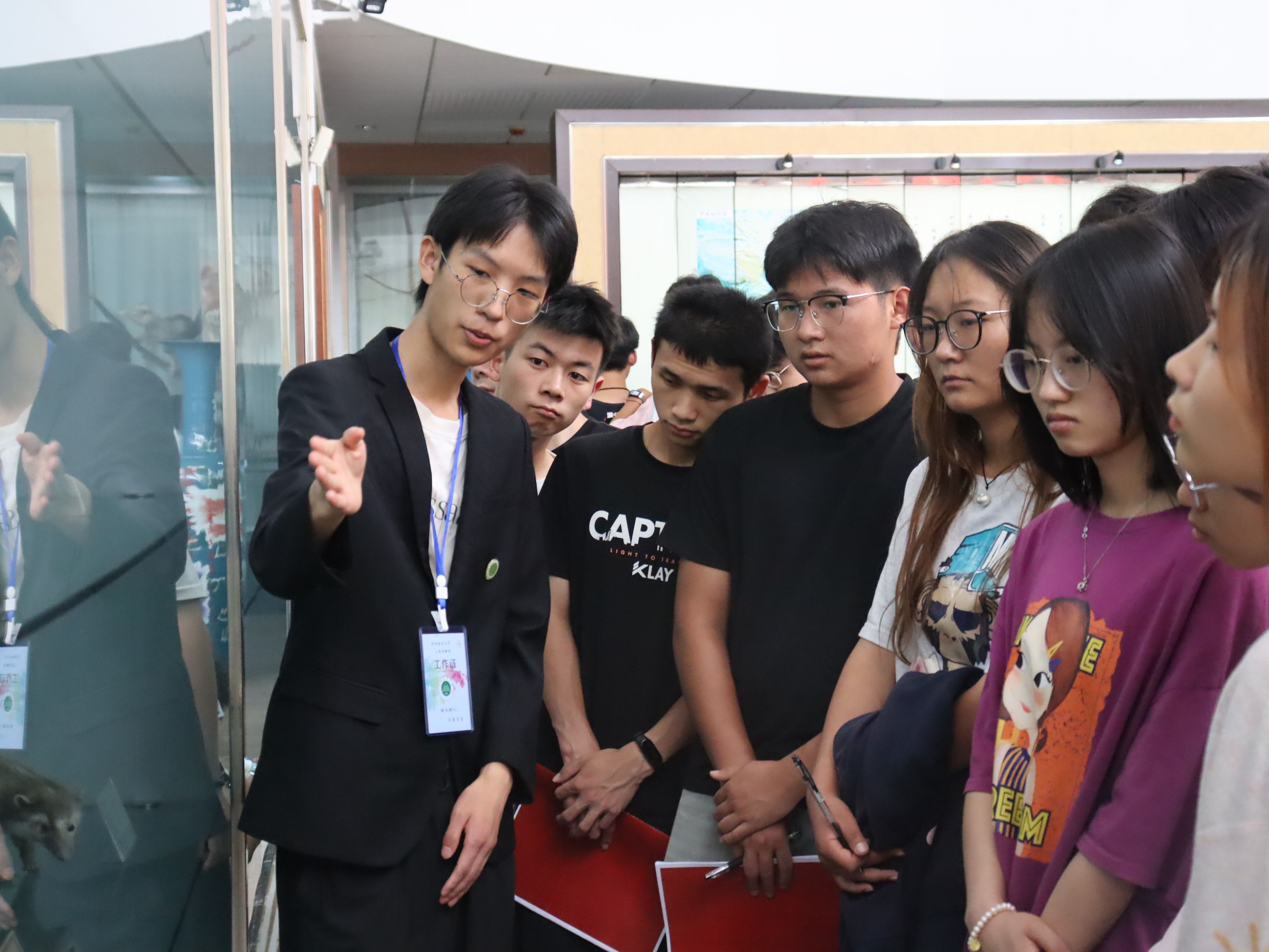 志愿讲解团的讲解员给同学们讲解米兰milan官方网站标本馆的陈列物种
