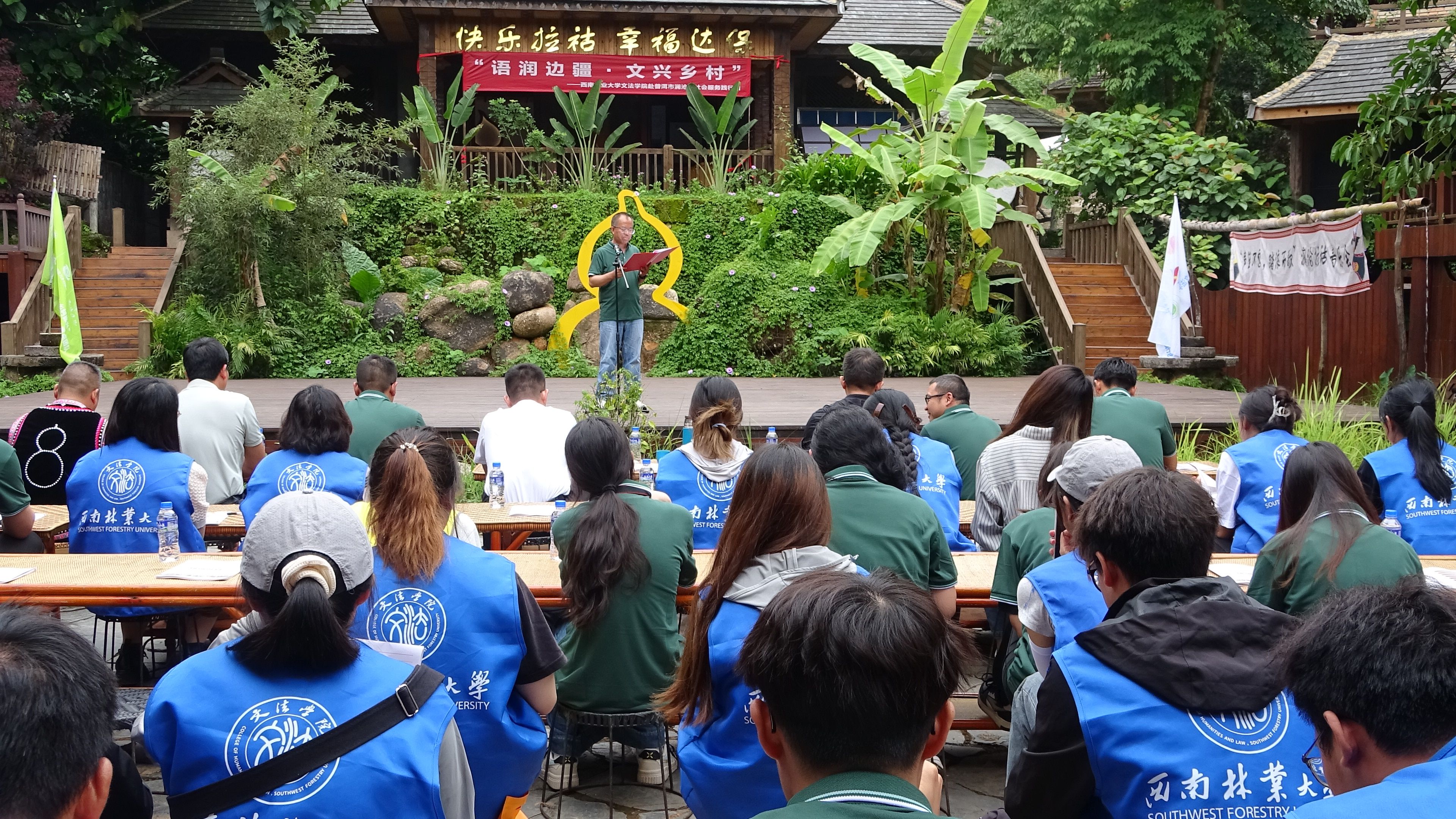 仪式在当地民族特色歌舞中拉开帷幕,阮伟向米兰milan官方网站一行表示最诚挚的欢迎和衷心的感谢,表示澜沧的发展离不开语言的桥梁,乡村的振兴需要文化的纽带。希望学校在接下来的时光里携手同行,让语言的力量点亮乡村振兴的美好蓝图。随后,魏宏以《国家通用语言文字推广普及的重要意义暨推普助力乡村振兴铸牢中华民族共同体意识》为主题做宣讲,并指出国家通用语言文字是文化传承的纽带,是经济发展和社会进步的基石,更是铸牢中华民族共同体意识的强大引擎。推广普及国家通用语言文字,是党中央、国务院作出的重大战略部署,也是助力乡村全面振兴、促进各民族交往交流交融、实现共同富裕的关键一环。学校本次暑期社会实践工作是对国家战略的积极响应与具体落实,通过助力提升当地群众国家通用语言文字应用能力,以语言为桥,连接校地合力,赋能乡村振兴与民族团结进步事业,书写校地协同发展、共筑文化繁荣的新篇章。同时希望同学们通过此次“国情课”和“思政课”,扑下身子,走进田间地头,融入乡亲们中间,用所学知识服务社会,在实践中深刻理解国家战略的深远意义,切身感受乡村发展的脉搏,体悟民族团结的力量,磨炼吃苦耐劳的意志品质,提升解决实际问题的能力,展现新时代西林学子的责任担当与青春风采。