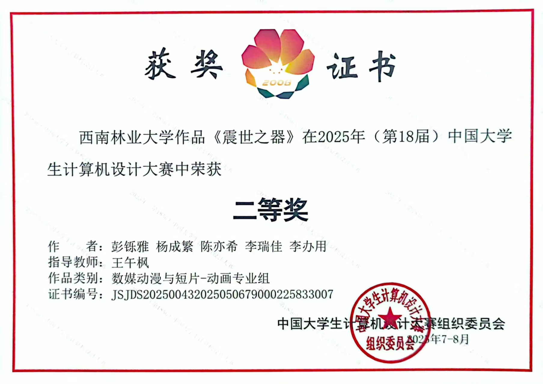 该作品在全国众多高校中脱颖而出,展现了中国传统文化的现代表达,融合数字技术与艺术创作,凸显学校在跨学科融合与创新实践教学方面的突出成果。