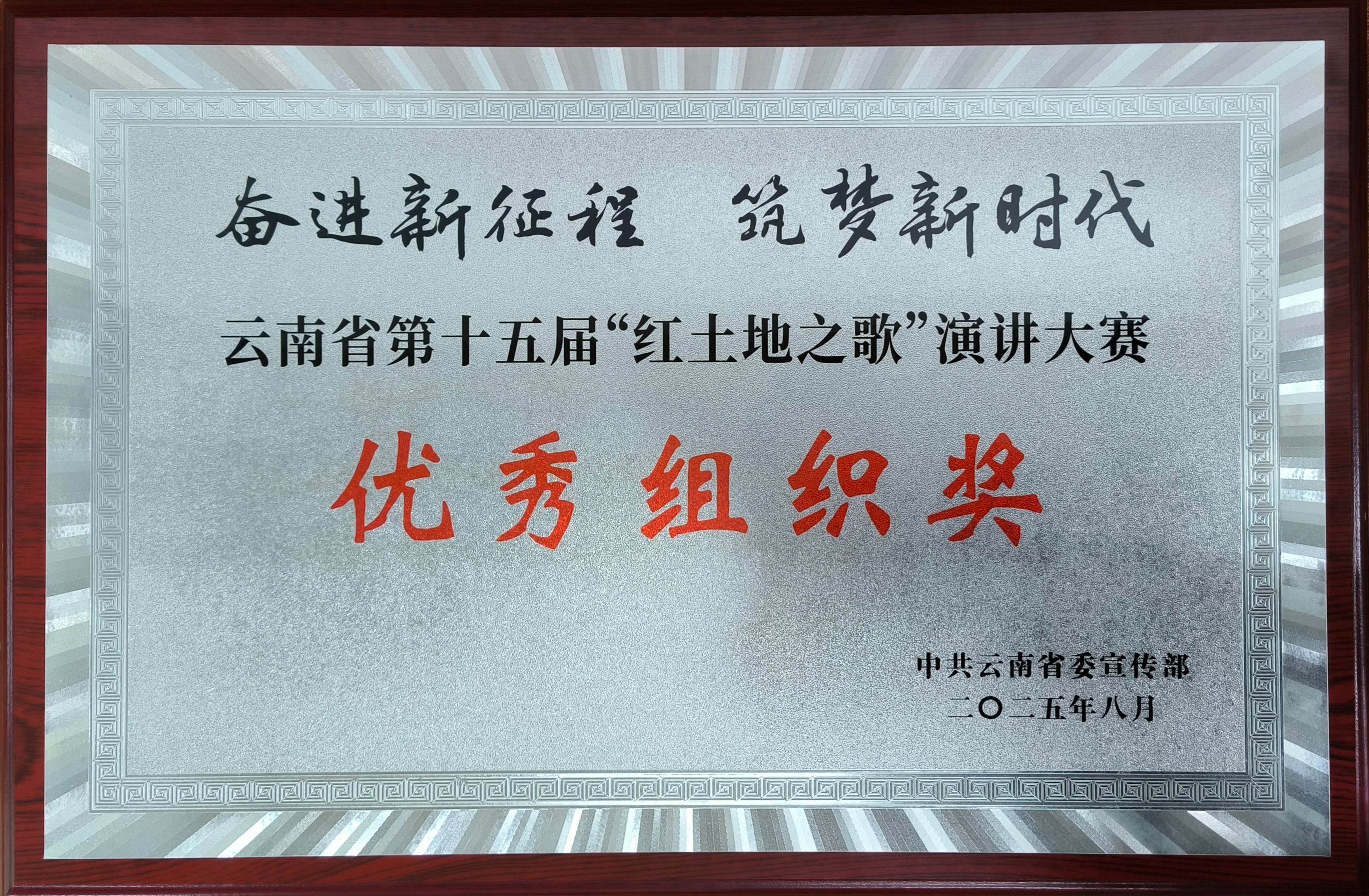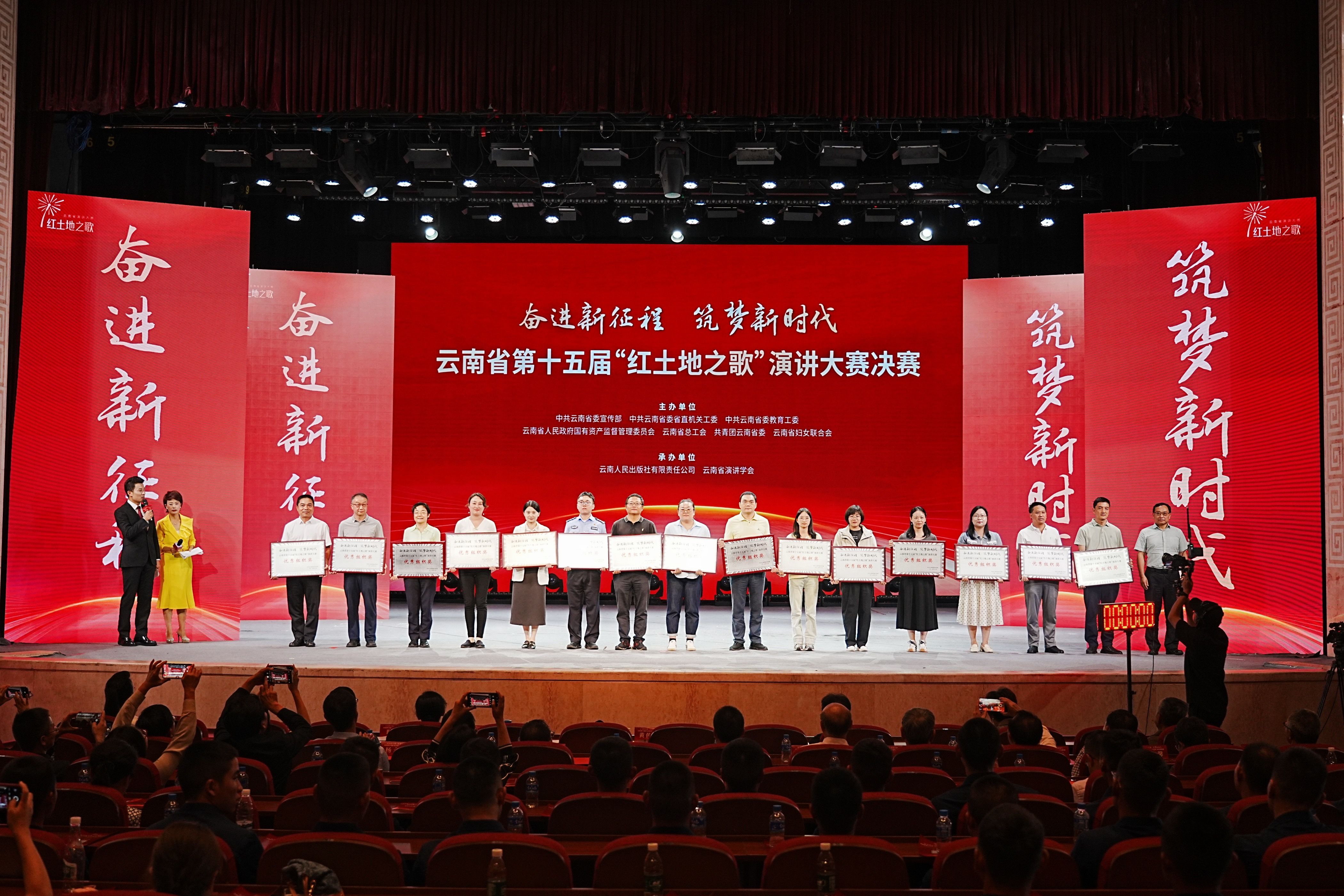 8月25日,云南省第十五届“红土地之歌”演讲大赛决赛在抗战胜利纪念堂成功举行。本届大赛主题为“奋进新征程 筑梦新时代”。决赛由云南省委宣传部、省委省直机关工委、省委教育工委、省国资委、省总工会、团省委、省妇联联合主办,云南人民出版社有限责任公司、云南省演讲学会承办。