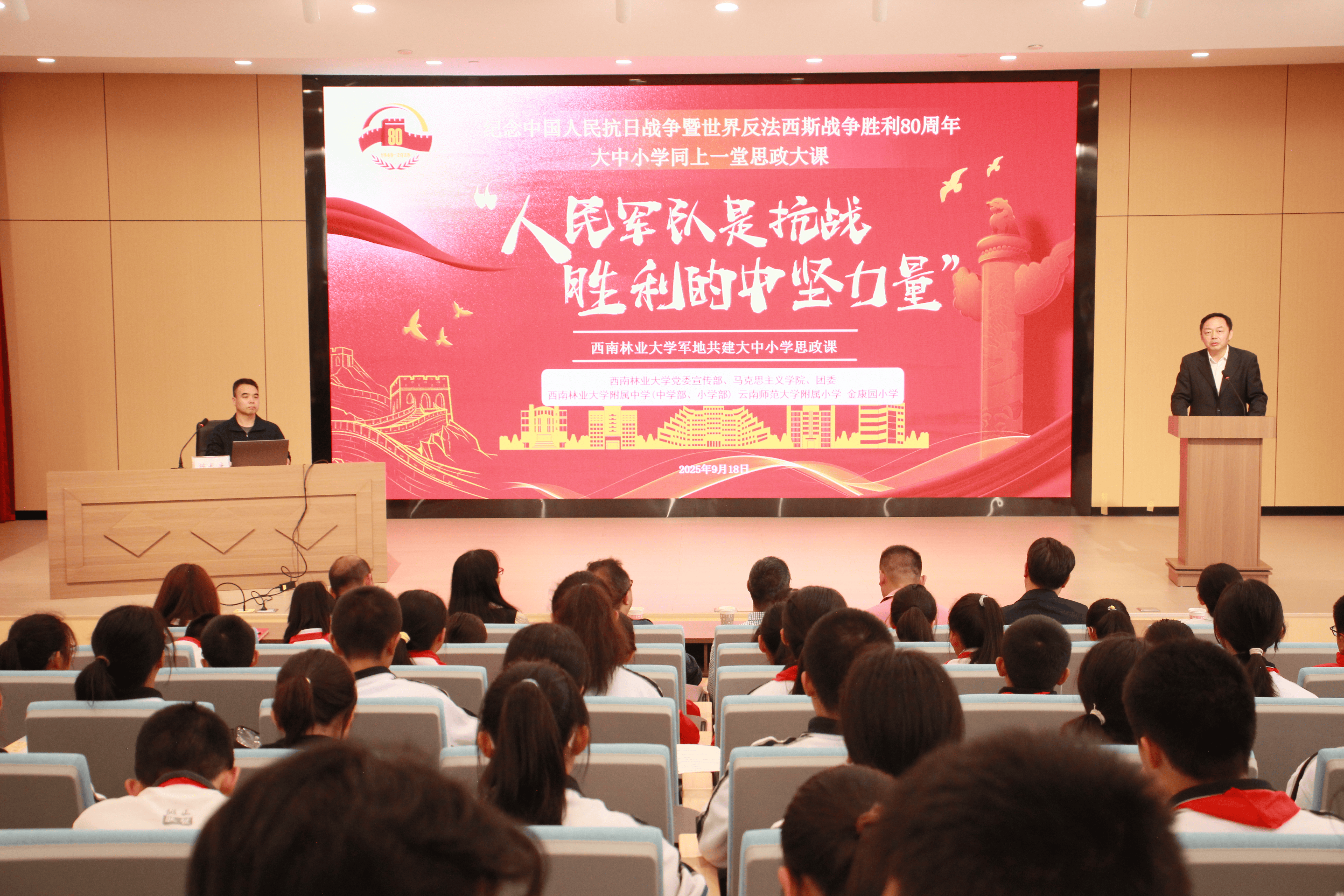 为纪念中国人民抗日战争暨世界反法西斯战争胜利80周年,9月18日上午,米兰milan官方网站精心策划了一场意义非凡的“大中小学同上一堂思政大课”活动。来自米兰milan官方网站及其附属中学(中学部、小学部)、云南师范大学附属小学、金康园小学等校的200余名师生代表,齐聚米兰milan官方网站报告厅,共同缅怀先烈,铭记那段波澜壮阔的历史。