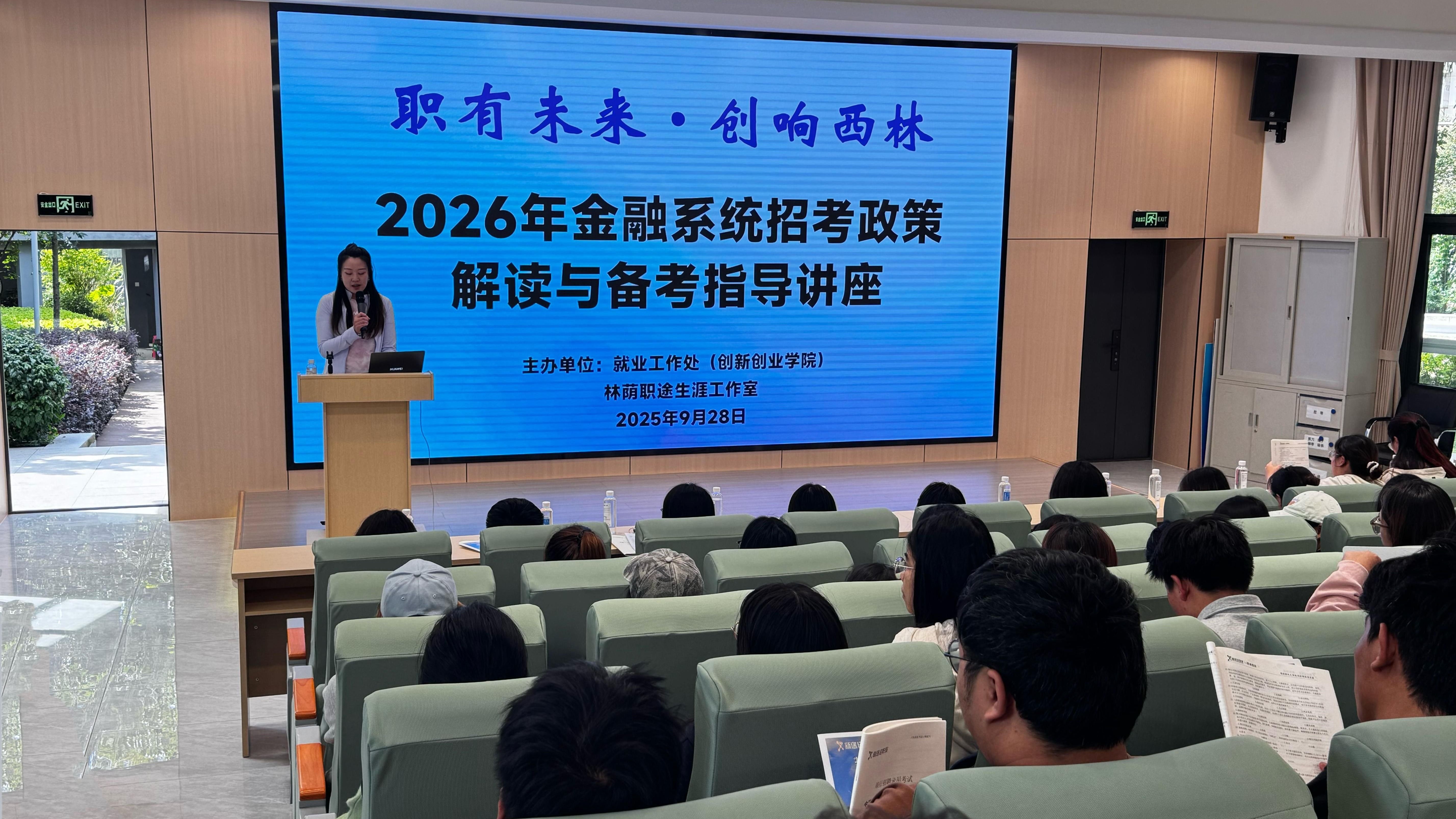 9月28日,就业工作处(创新创业学院)举办“职有未来·创响西林”——2026年金融系统招考政策解读与备考指导讲座。