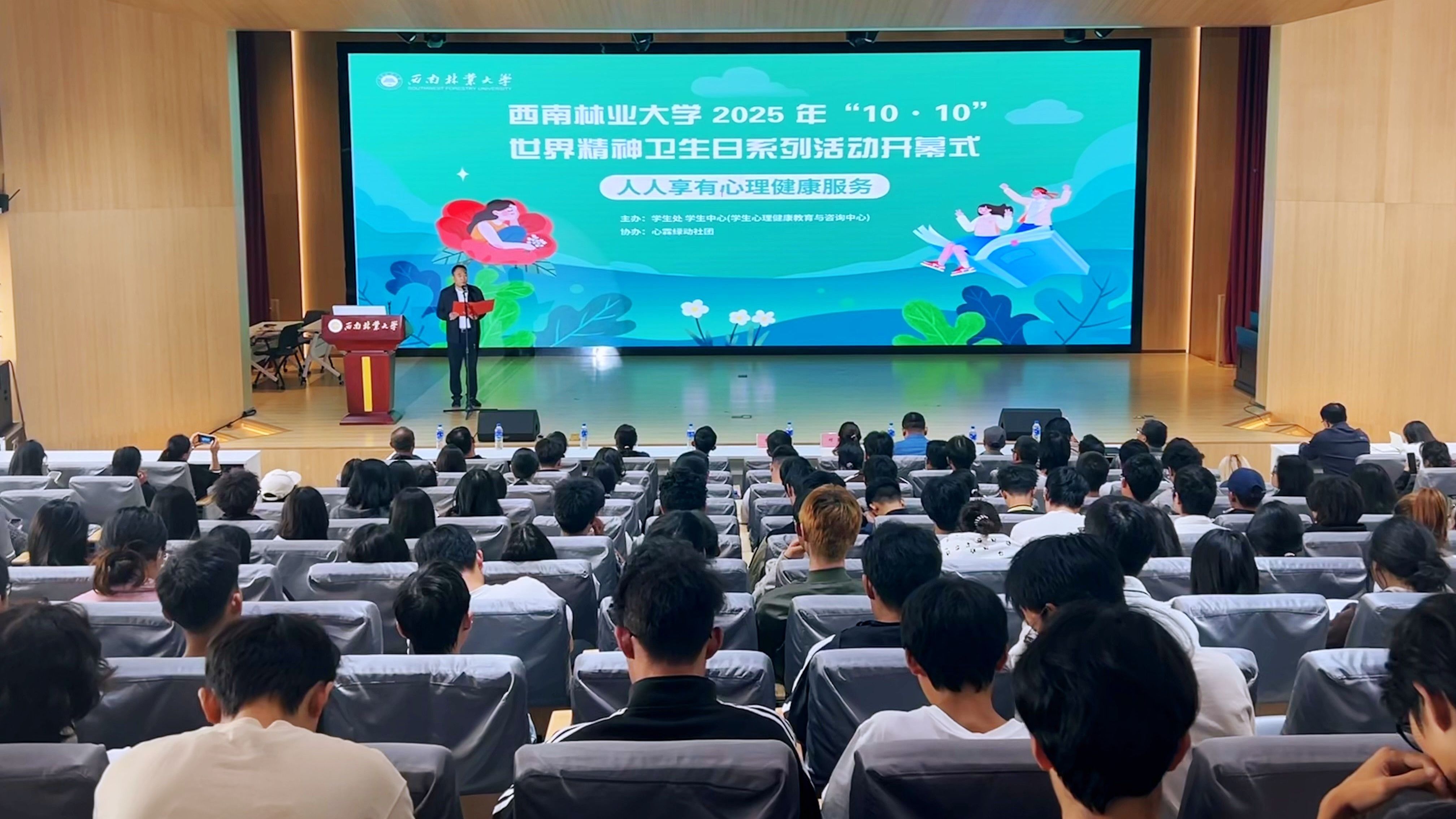 10月9日,米兰于北图书馆大报告厅举行以“人人享有心理健康服务”为主题的2025年世界精神卫生日系列活动开幕式。副校长郭华及各学院党委副书记、辅导员及学生代表共350余人参加活动。