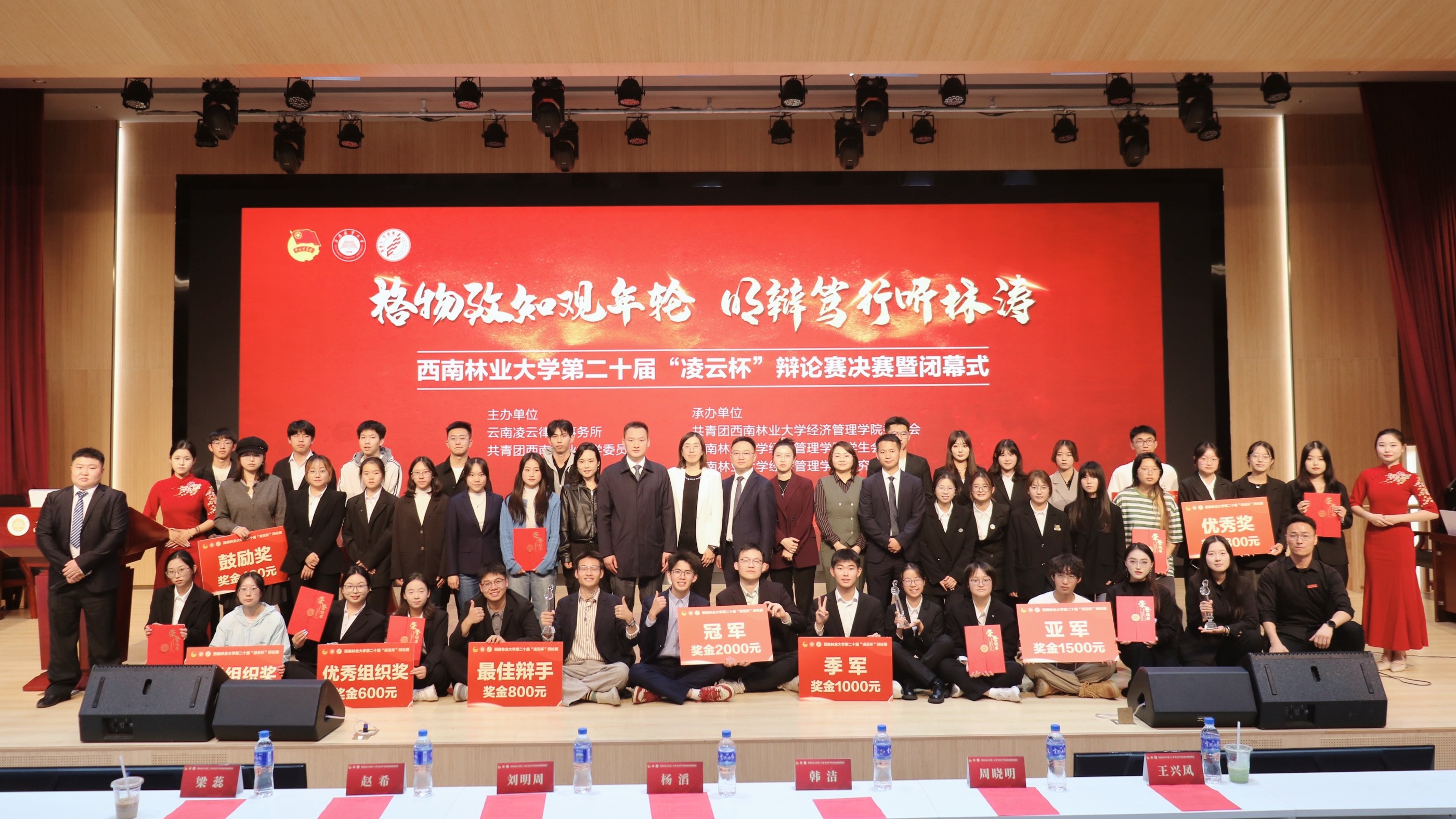 本届辩论赛以“格物致知观年轮 明辨笃行听林涛”为主题,延续“辩以明理 论以求真”的优良传统,辩题紧扣时代脉搏,从科技伦理到青年责任,从文化传承到职业发展,引领学子关注社会现实,思考时代命题。经过激烈角逐,生物与食品工程学院代表队获得冠军、经济管理学院代表队获得亚军、文法学院代表队获得季军、外国语学院代表队获得第四名,园林园艺学院、生态与环境学院(湿地学院)获优秀组织奖,林学院代表队、研究生代表队、大数据与智能工程学院代表队、艺术与设计学院代表队获得优秀奖。