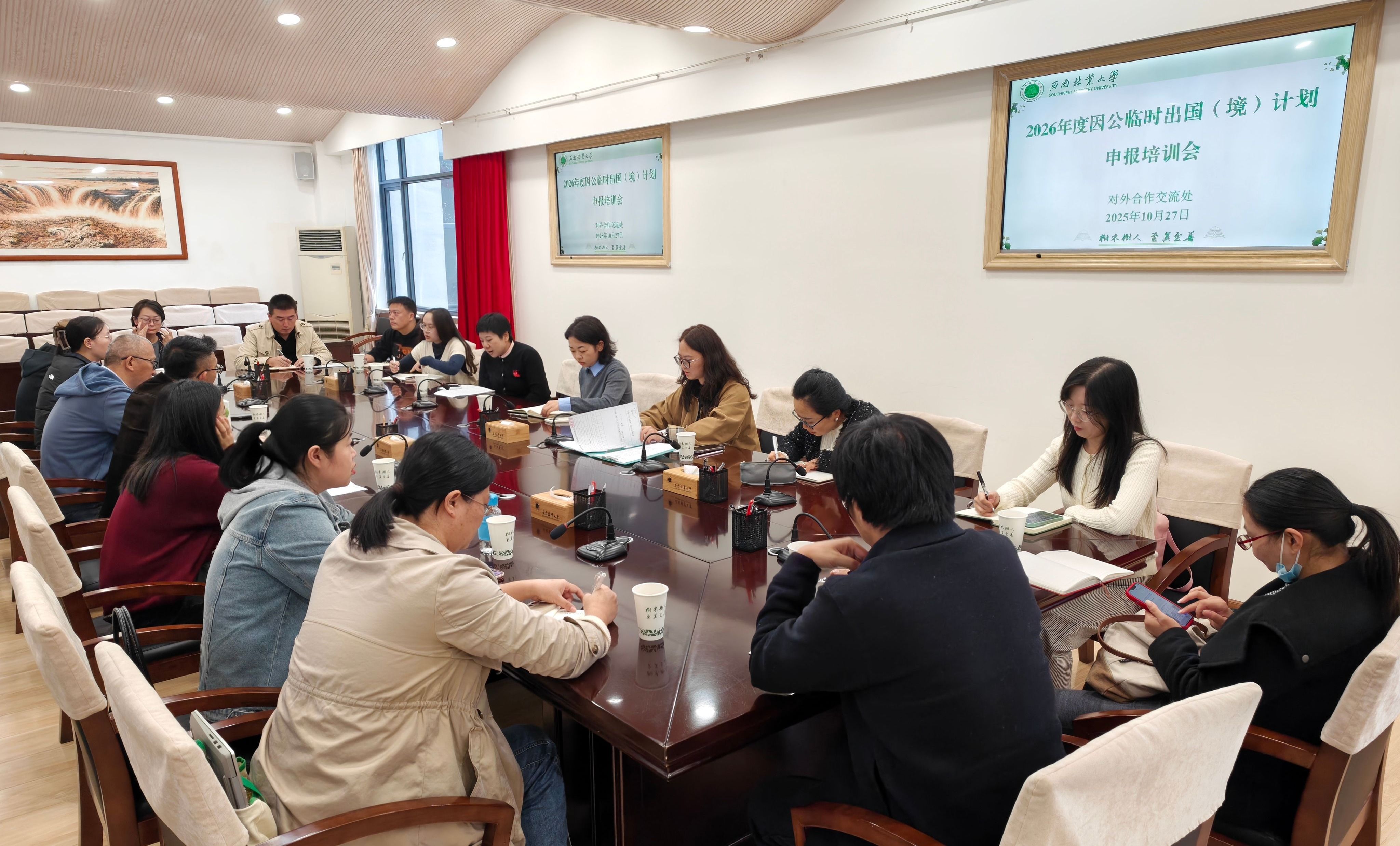 10月27日,对外合作交流处举办2026年因公临时出国(境)计划申报培训会。各学院外事联络员及拟申报出访计划的教师参加培训。