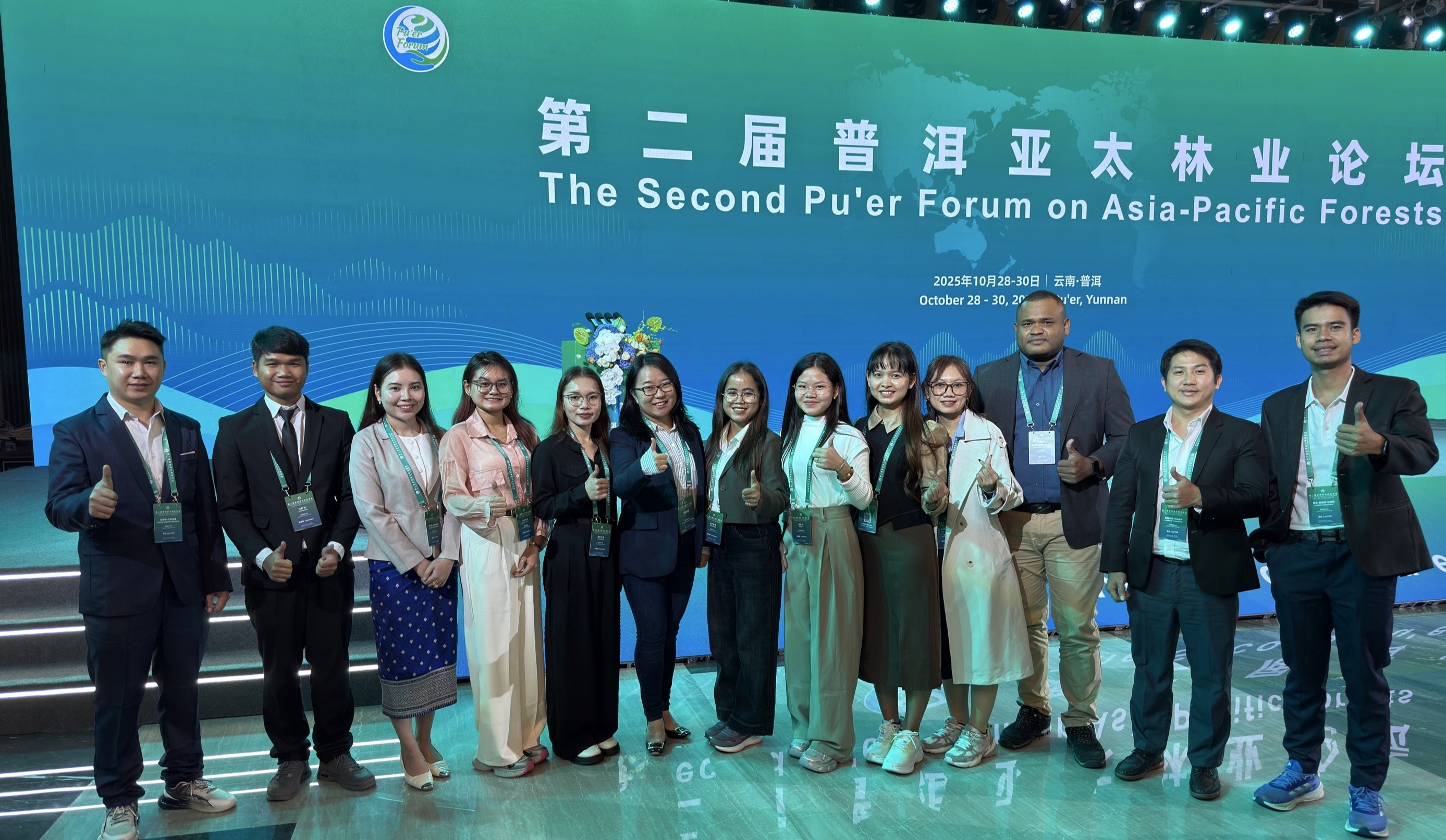 10月27日至31日,第二届普洱亚太林业论坛在云南省普洱市举行。受主办方亚太森林恢复与可持续管理组织(APFNet)邀请,外国语学院(国际学院)和林学院(亚太林学院)共同带领学校APFNet奖学金资助的12名留学生全程参与了此次国际会议。