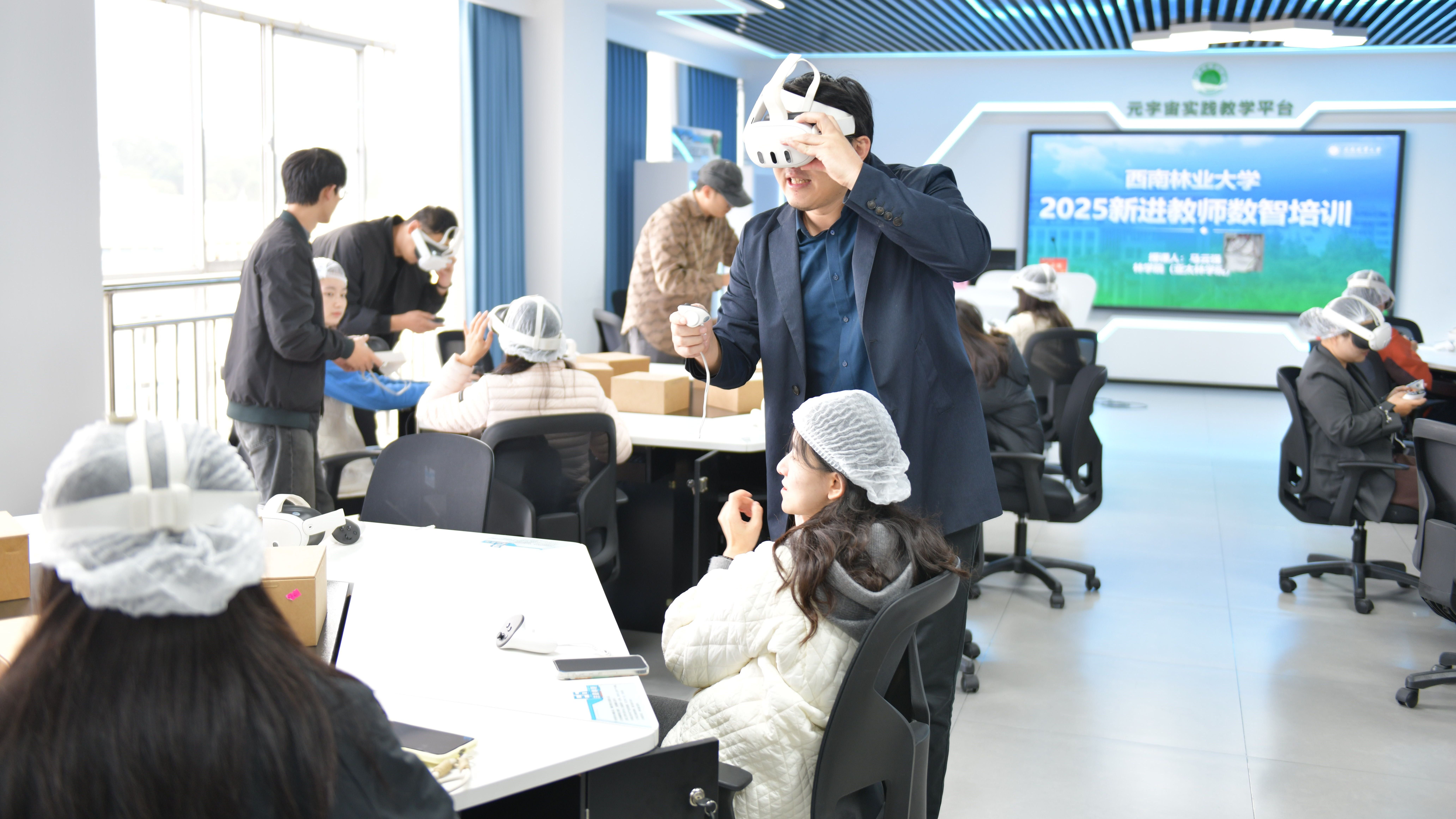 11月6日至7日,米兰在林学楼元宇宙实验教学中心组织开展新入职教师数字素养提升专项培训。林学院(亚太林学院)副教授马云强应邀作“虚拟现实技术在林学专业中的应用”专题培训。