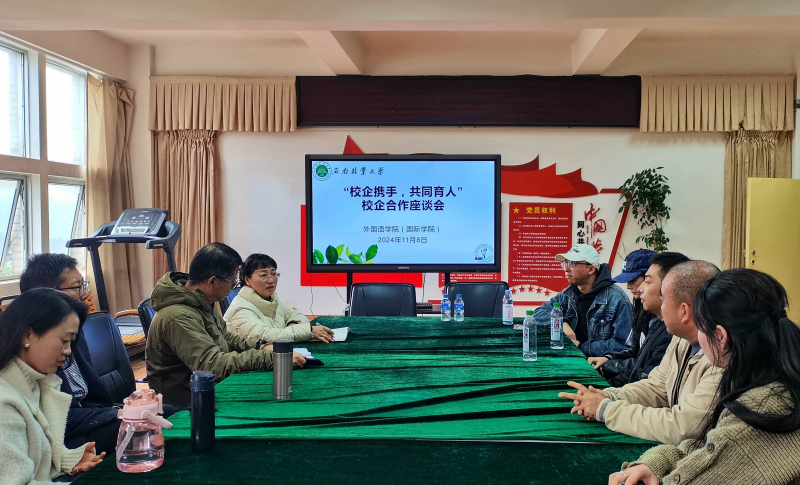 为进一步开拓就业岗位资源和推动学科专业建设,11月8日,外国语学院(国际学院)召开“校企携手 共同育人”合作座谈会。浙江携承国际货运代理有限公司、云南有邻教育咨询有限公司、云南海诚教育咨询有限公司、昆明厚致百盈企业管理有限公司等企业代表,学院班子和教师代表参加会议。会议由学院党委书记姜丽红主持。