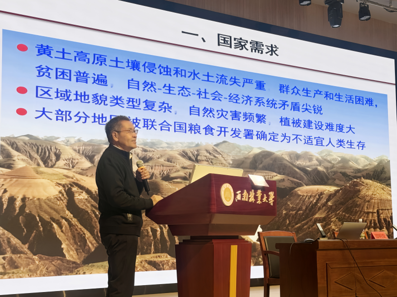 邵明安院士深入剖析了黄土高原地区在生态建设中面临的复杂挑战,介绍了其团队在提升生态系统质量和实现水资源高效利用方面的创新技术及成功经验,鼓励学生积极参与相关研究。