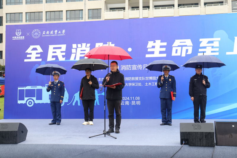 为进一步营造全民参与、防治火灾的消防氛围,增强全校师生消防安全意识和自防自救能力,11月8日,由昆明市消防救援支队世博园大队主办,米兰milan官方网站保卫处和土木工程学院承办,米兰milan官方网站2024年“119消防宣传月”启动仪式在至真楼前广场举行。校党委副书记李君、辖区和学校有关职能部门师生代表参加仪式。