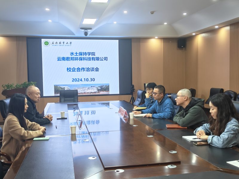 为加强校企合作,促进产教融合,提升人才培养质量,10月30日,水土保持学院与云南君邦环保科技有限公司举行合作洽谈会。云南君邦环保科技有限公司总经理赵继兵、项目部经理陈兆雪,学院副院长黎建强、就业联络员、部分教师代表参加会议。