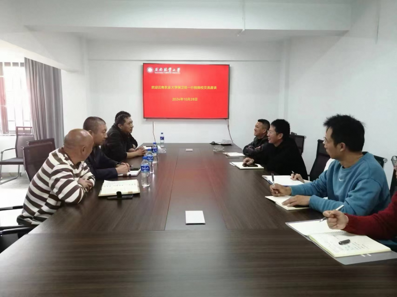 10月28日,云南农业大学保卫处田斌一行4人来保卫处交流校园安全管理工作。保卫处处长徐大华组织召开座谈会。