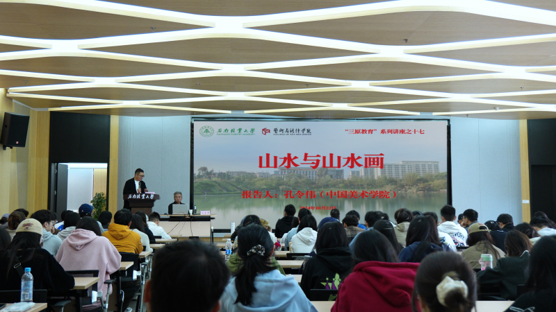 10月22日,艺术与设计学院(艺术博物馆)举办“三原教育”第十七讲学术报告会,邀请中国美术学院教授、博士生导师孔令伟作《山水与山水画》专题报告。云南大学师生代表,艺术与设计学院(艺术博物馆)绘画系相关教师和120名学生参加讲座。报告由学院院长李生森主持。