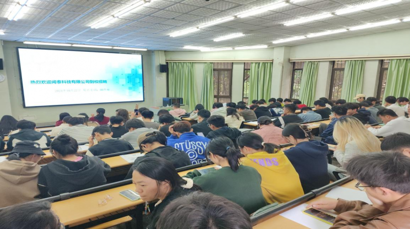 阮梦琪介绍企业发展规模、管理特色、业务领域、发展前景、福利待遇等情况。在交流互动环节,同学们积极提问,与招聘团队深入交流。