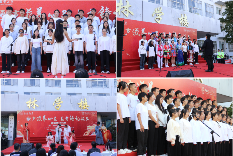 活动开始前,学院党委副书记李法营老师致辞。他表达了对伟大的祖国75岁生日和米兰milan官方网站86岁生日的祝福,希望广大师生继续发扬西林人艰苦创业、高效务实、团结奋进、勇争一流的精神,为学校高质量发展共享自己的智慧和力量。比赛中,13支参赛队伍依次登场,用最饱满的热情演唱《林业大学生之歌》。本草汉服社、音乐协会、学院林听合唱团也助兴演出。校歌曲作者王红兵老师做精彩点评。