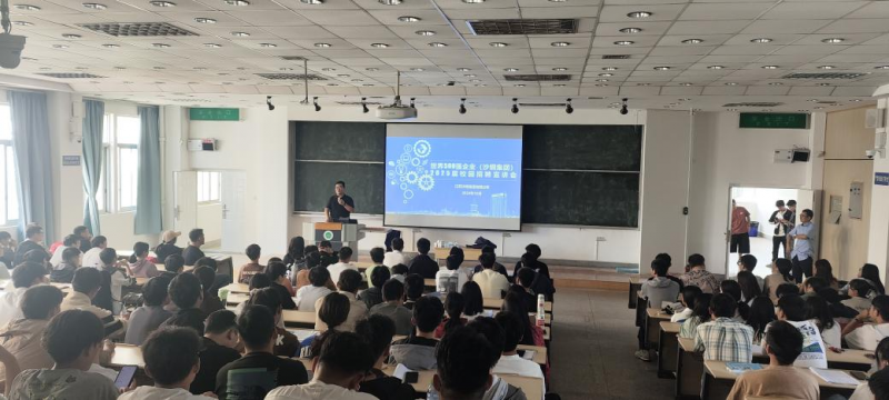 张修成介绍了企业的发展历程、企业文化、业务领域、发展前景、福利待遇等。在交流互动环节,同学们积极提问,与招聘团队进行深入交流。同学们表示,通过此次宣讲会,他们对沙钢的企业文化、业务领域及招聘需求有了更全面地了解。