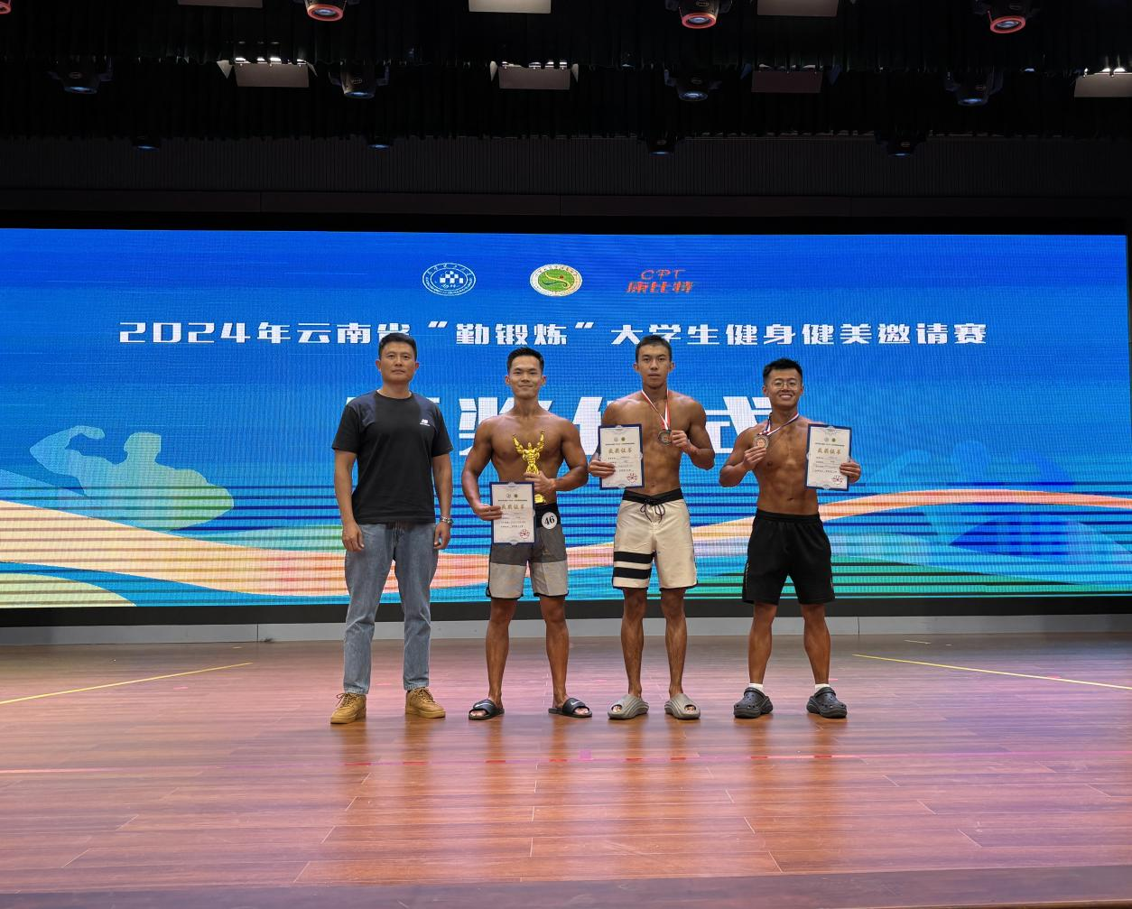 9月 28 日,2024年云南省“勤锻炼”大学生健身健美邀请赛在昆明理工大学呈贡校区举行,米兰代表队员郭雨帆荣获男子健美70KG级决赛第三名,王顺玮荣获男子健体D组决赛第三名,许定民荣获男子健体C组决赛第四名。