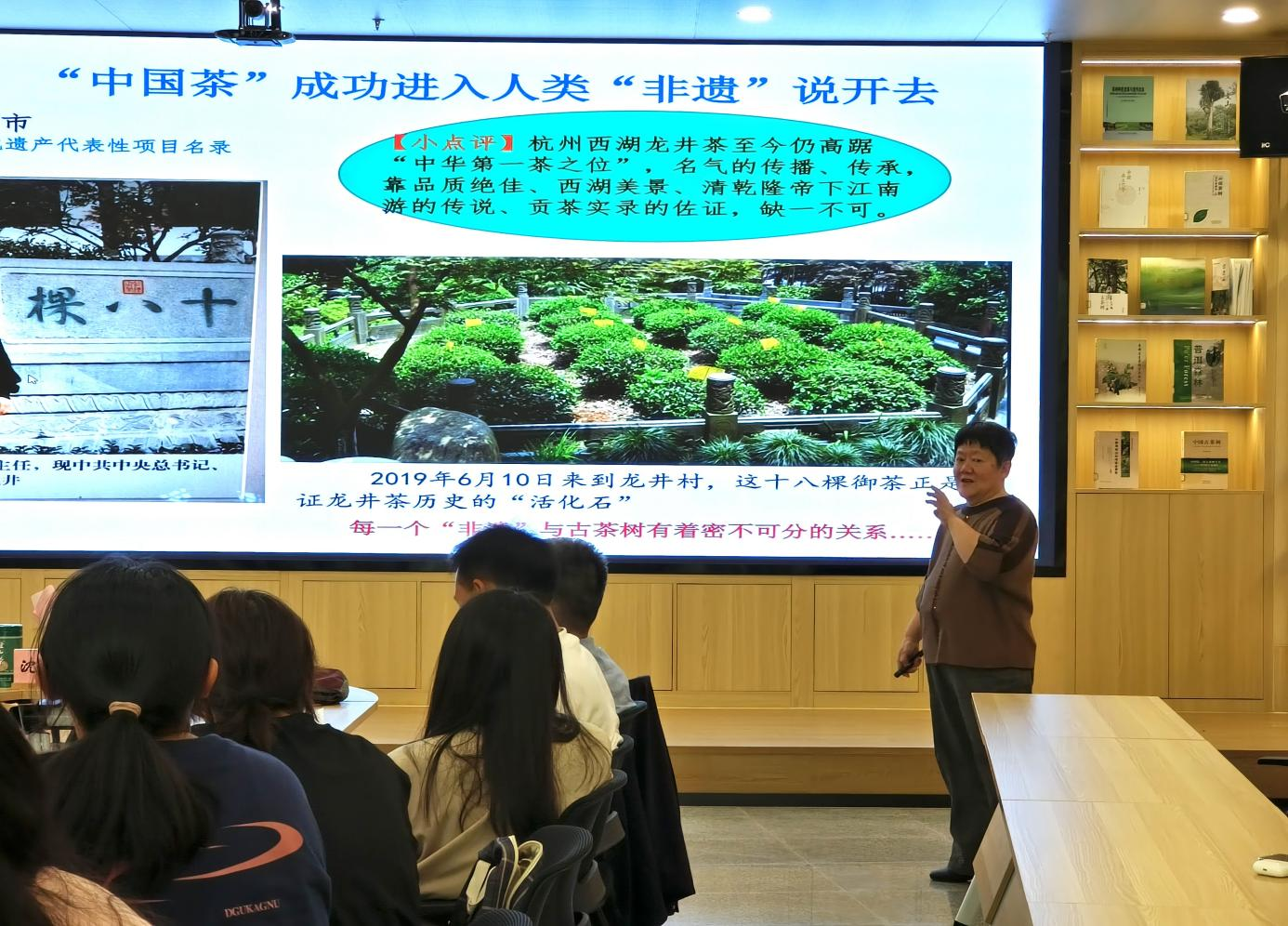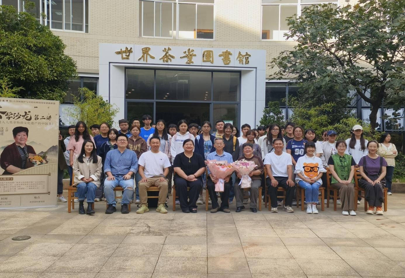 沈晓进以《解读进入人类非物质文化遗产的中国茶》为题,对各类非遗茶技、茶俗、茶艺的核心特点进行了专业解读。现场氛围十分活跃,与会的校内外师生都积极提问、交流,同时对中国茶研究等问题进行了深入的探讨。