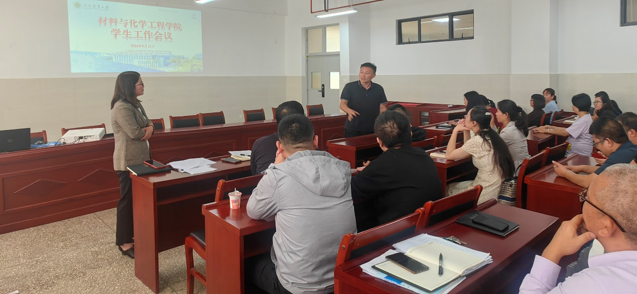 为扎实做好学院新学期学生管理服务工作,9月13日,材料与化学工程学院召开2024年秋季学期学生工作会议。学院党政领导班子、专职辅导员、班主任、兼职班主任参加会议。